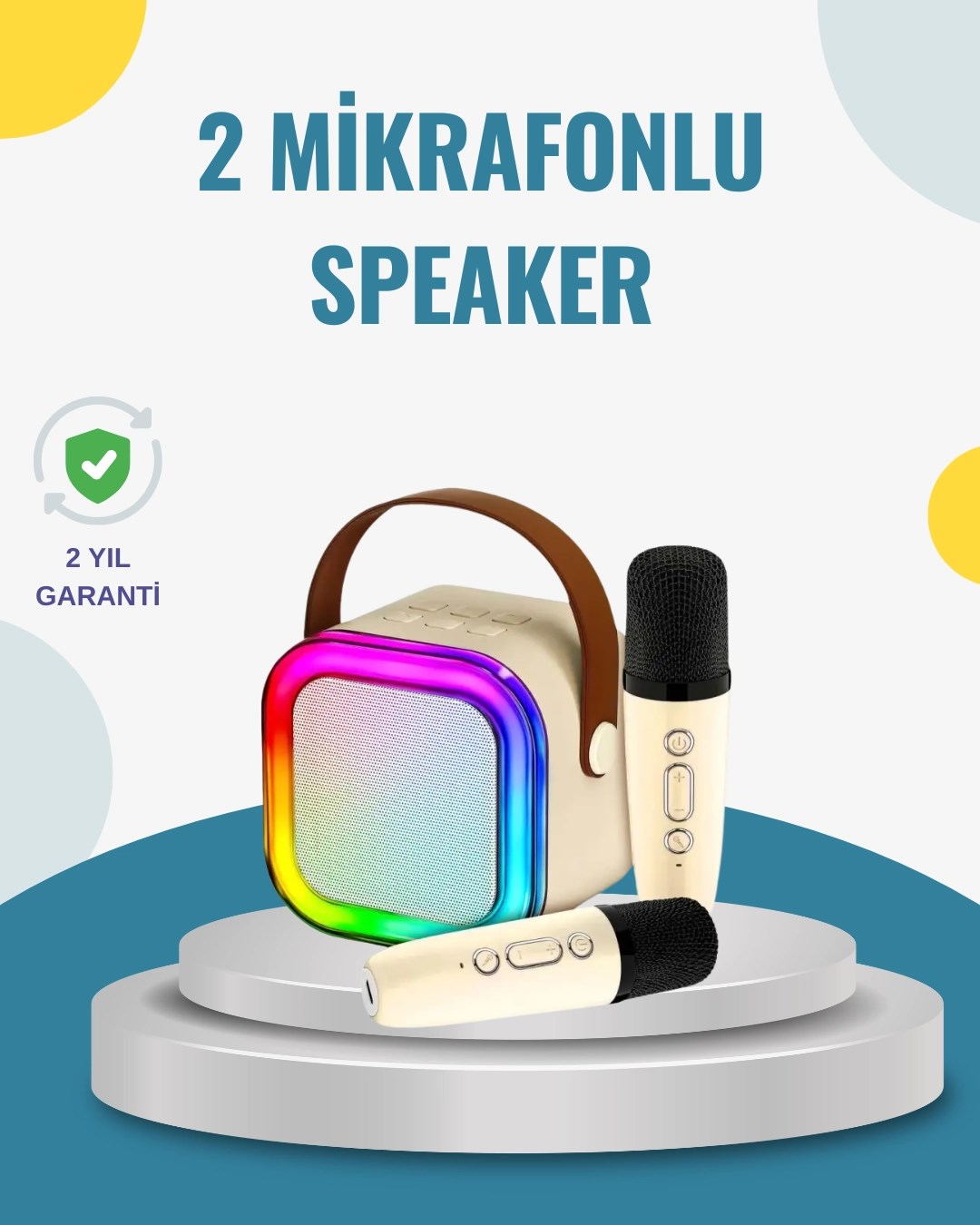 Kablosuz Karaoke Hoparlör – Çift Mikrofon Ve Led Işıklı