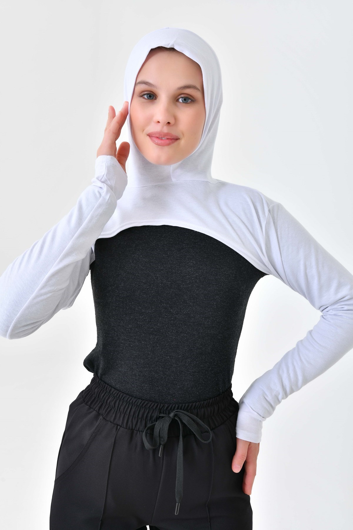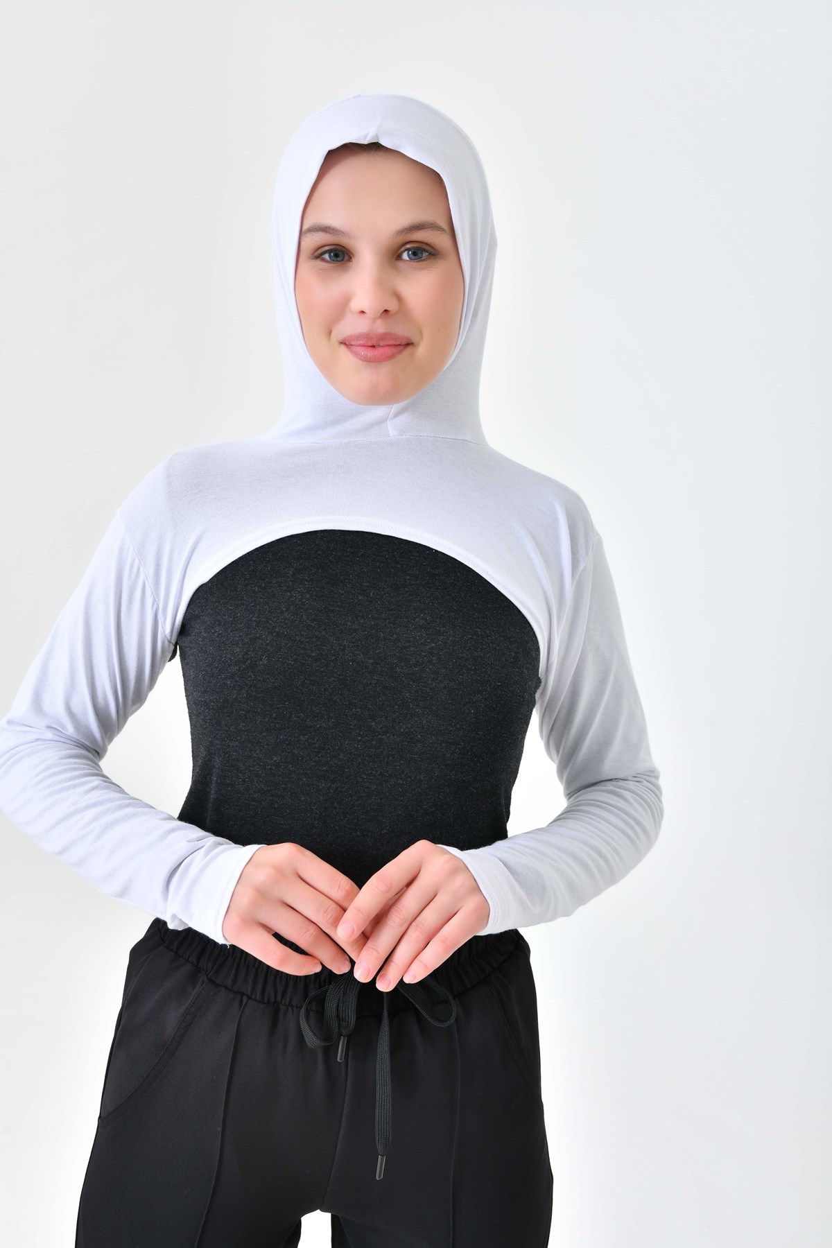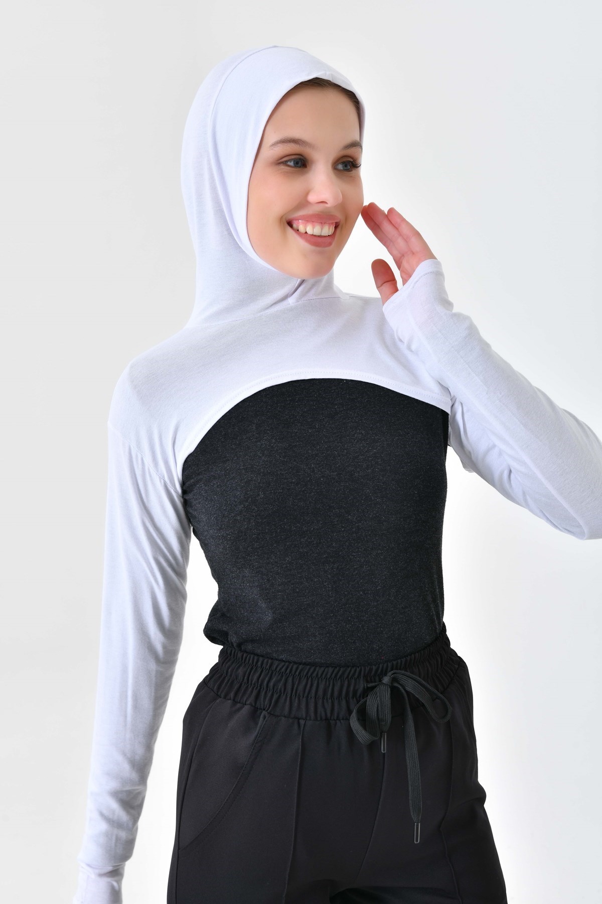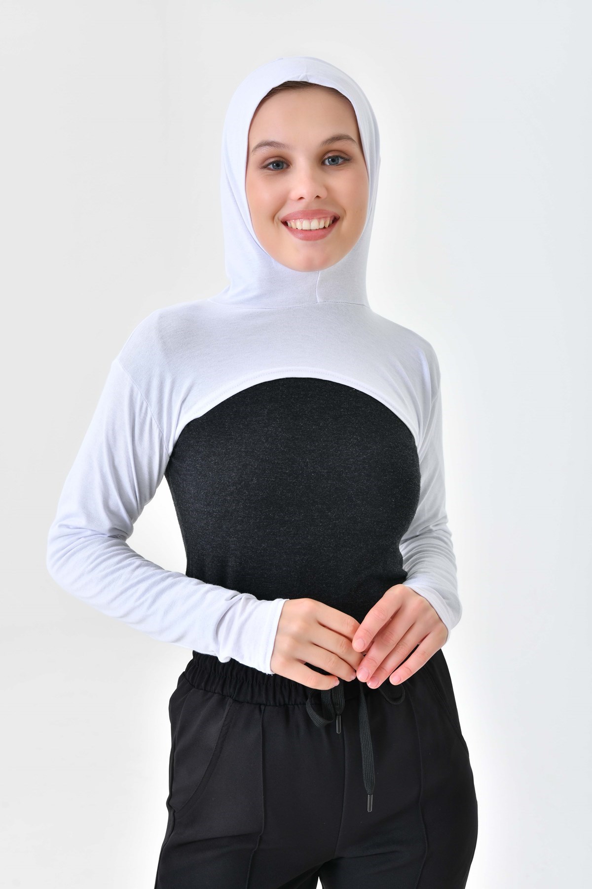 Beyaz Yüksek Kaliteli Boneli Tesettür Boyunluklu Kolluk, Güneş Koruyucu Kol Örtüsü, Kapüşonlu Boyun Örtüsü, Bolero, Kapüşonlu Crop Bluz
