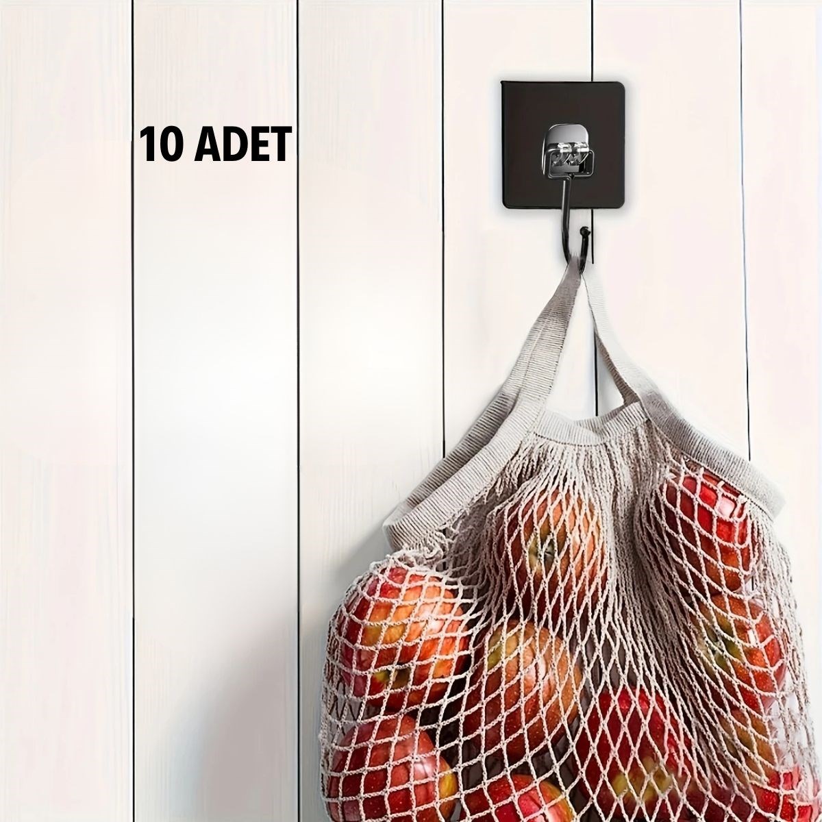 BUFFER® 10 Adet Güçlü Yapışkanlı Siyah Duvar Askısı – Delmeden, Vida Kullanmadan Pratik Çözüm!