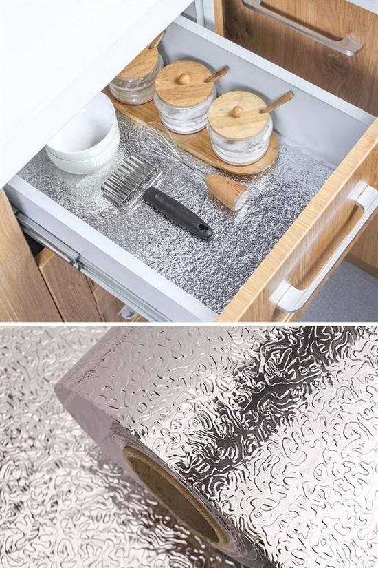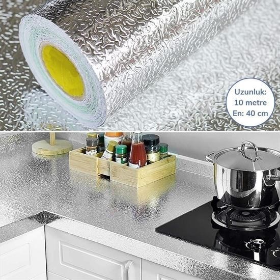 BUFFER® 10 Metre Kendinden Yapışkanlı Silinebilir Mutfak Tezgah Üstü Sticker Folyo Gümüş Renk