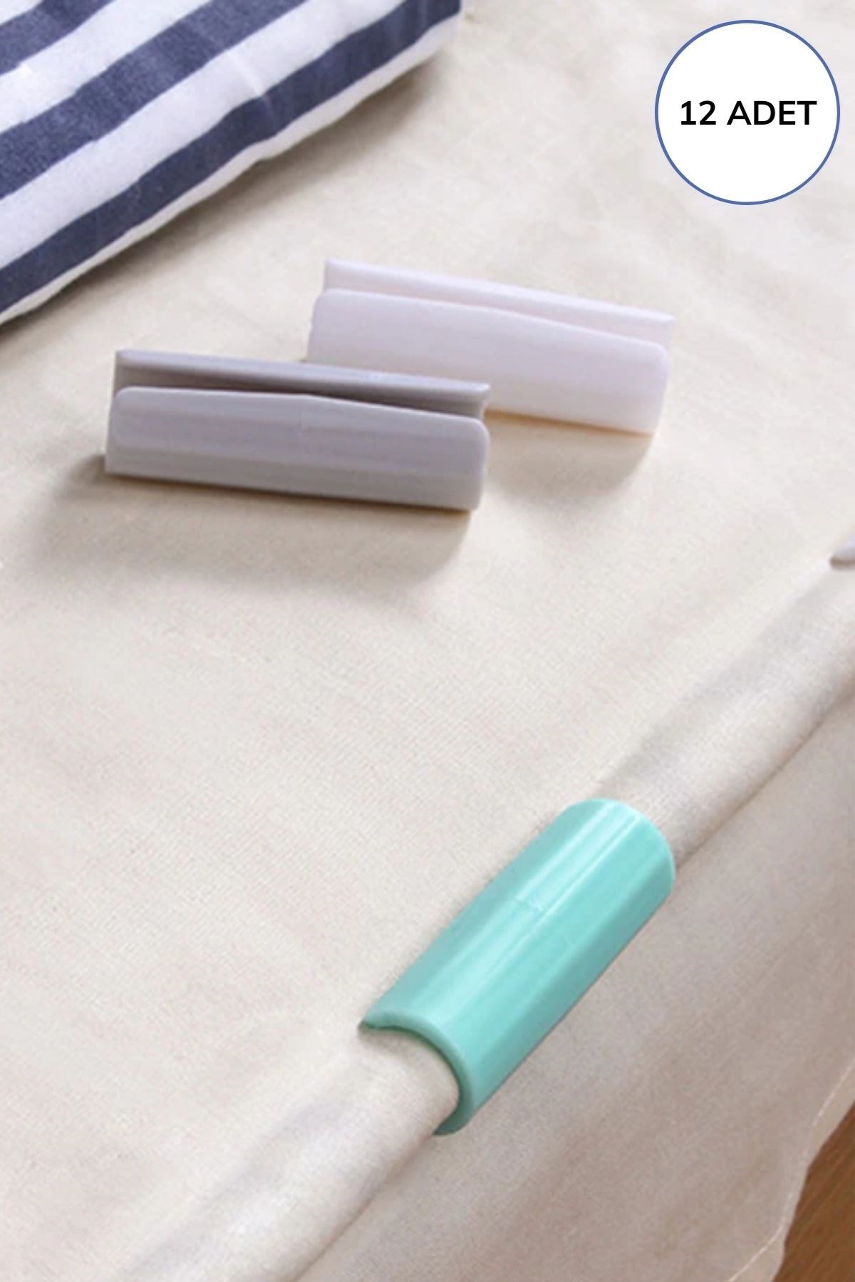 BUFFER® 12 Adet Çok Amaçlı Çarşaf Tutucu, Sabitleyici ,Kaydırmaz Nevresim Örtü Düzenleyici Klipsler