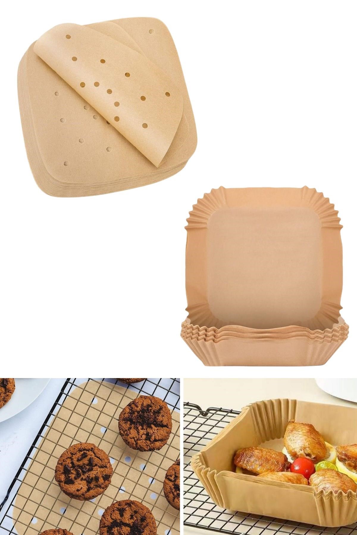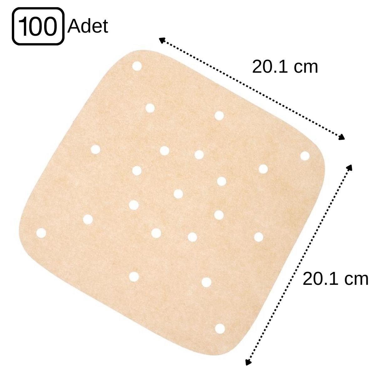 BUFFER® 200 Adet Air Fryer Pişirme Kağıdı Tek Kullanımlık Hava Fritöz Yağlı Kağıdı Kare Delikli ve Tabak Model