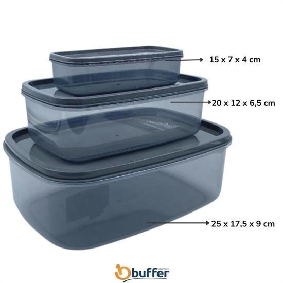 BUFFER® 3'lü Dikdörtgen Füme Şeffaf Sızdırmaz Kilitli Erzak Bakliyat Gıda Saklama Kabı Seti -AK530