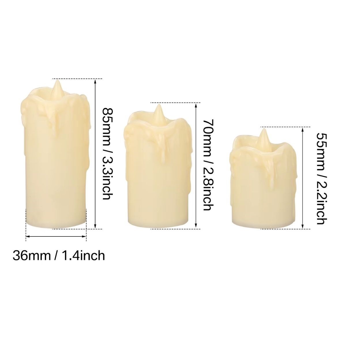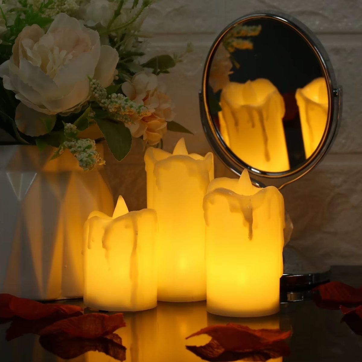 BUFFER® 3’lü Pilli Dekoratif LED Mum Işıkları – Gerçek Alev Efektli