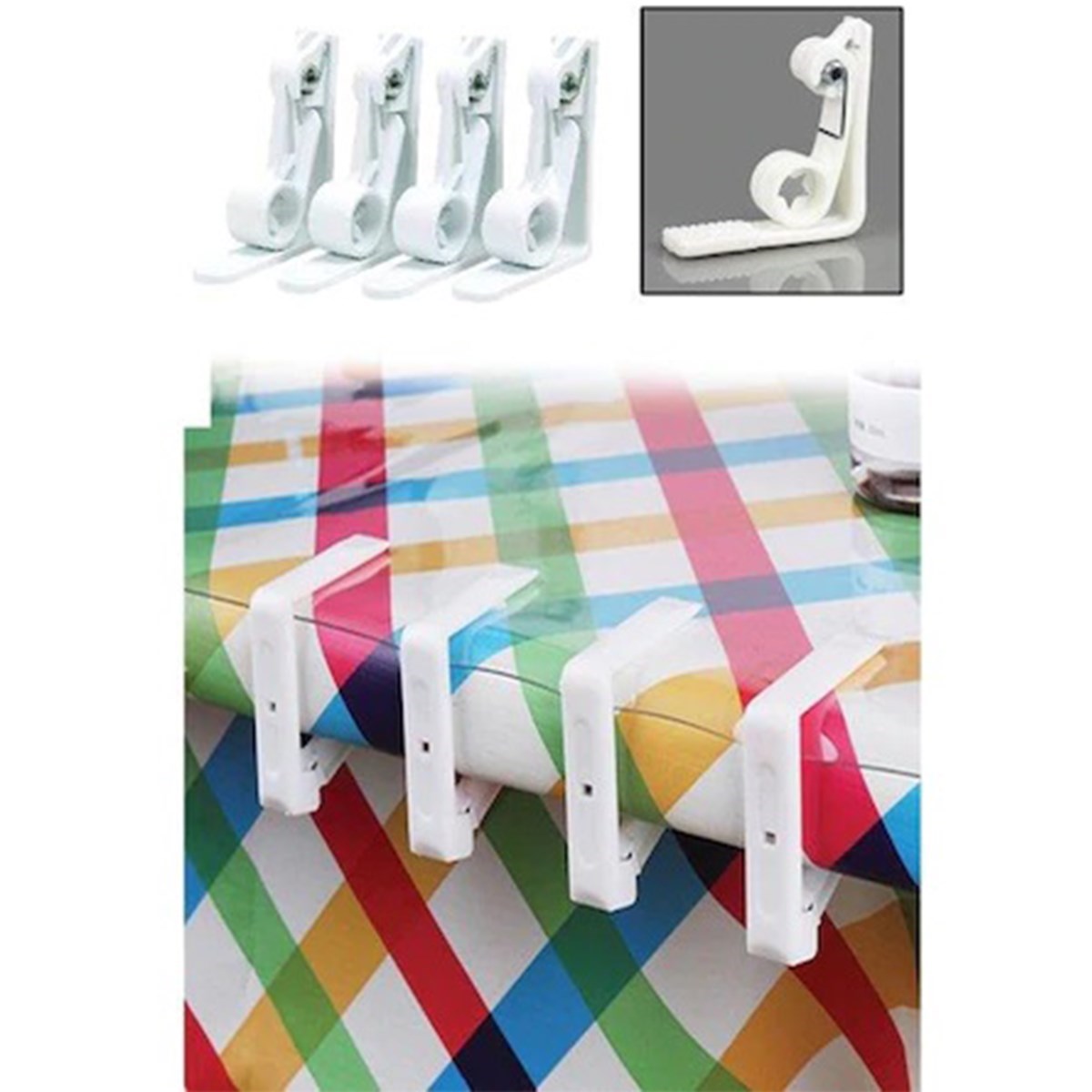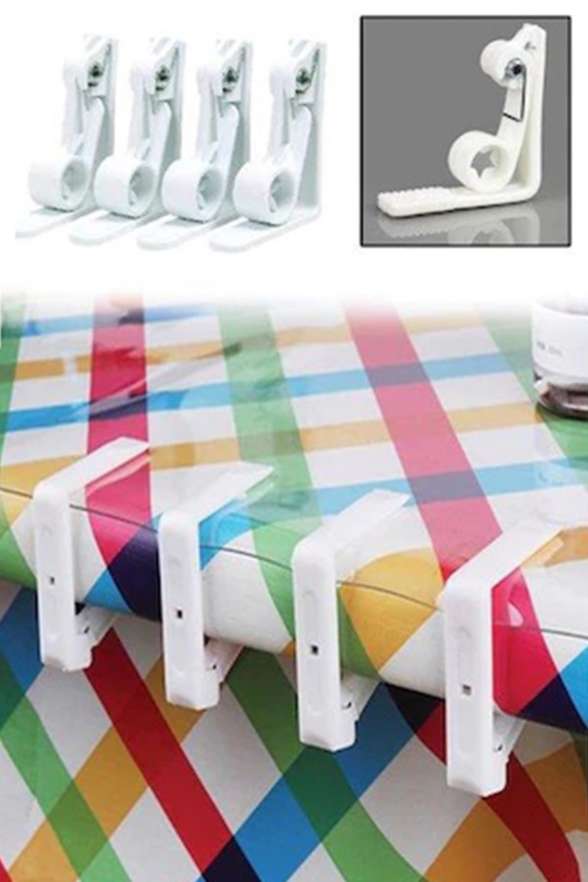 BUFFER® 4 Adet Pratik Yaylı Masa Örtüsü Tutucu Sabitleyici Mandal Aparatı