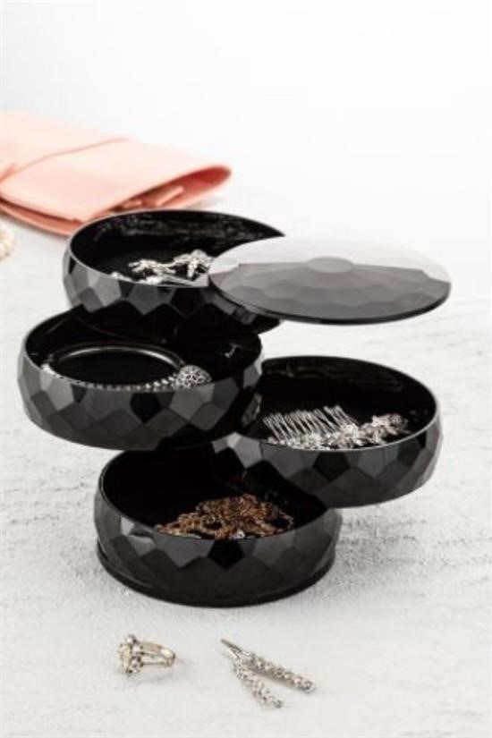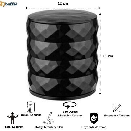 BUFFER® 4 Katlı Elmas Kesim 360 Derece Dönebilen Silindir Takı Makyaj Organizeri