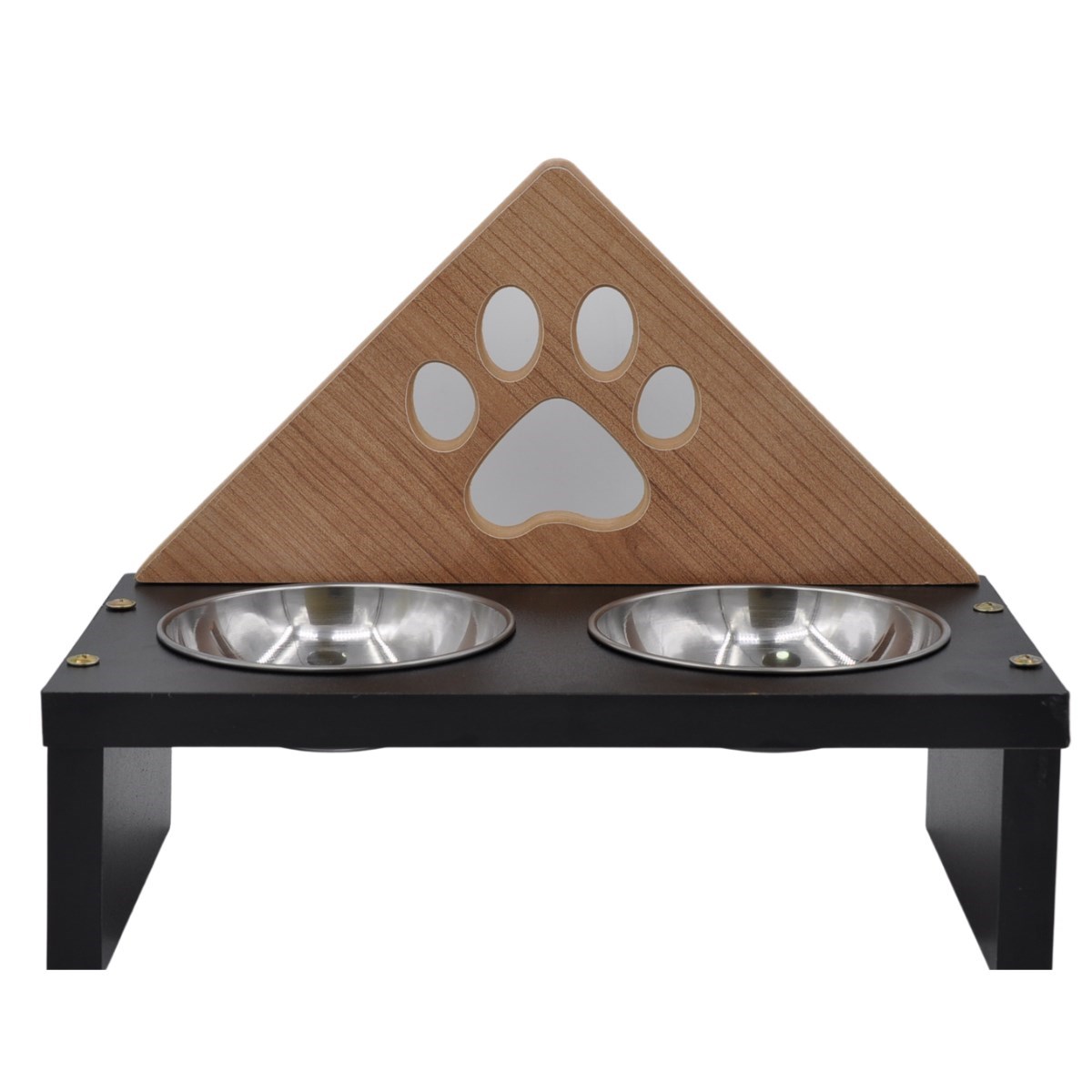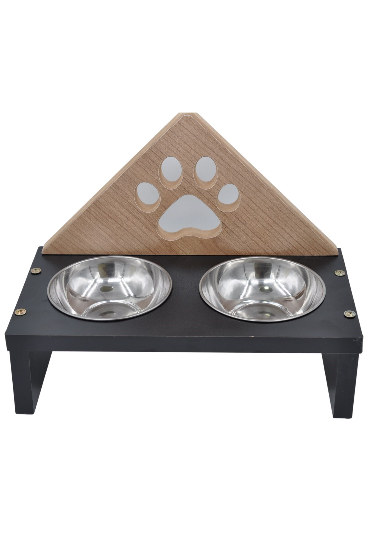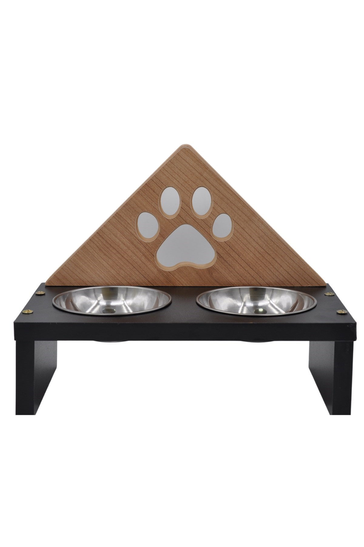 Buffer Ahşap ve Paslanmaz Çelik Kedi Köpek Mama Ve Su Kabı