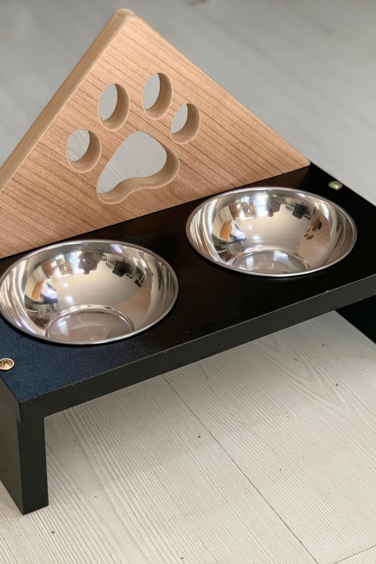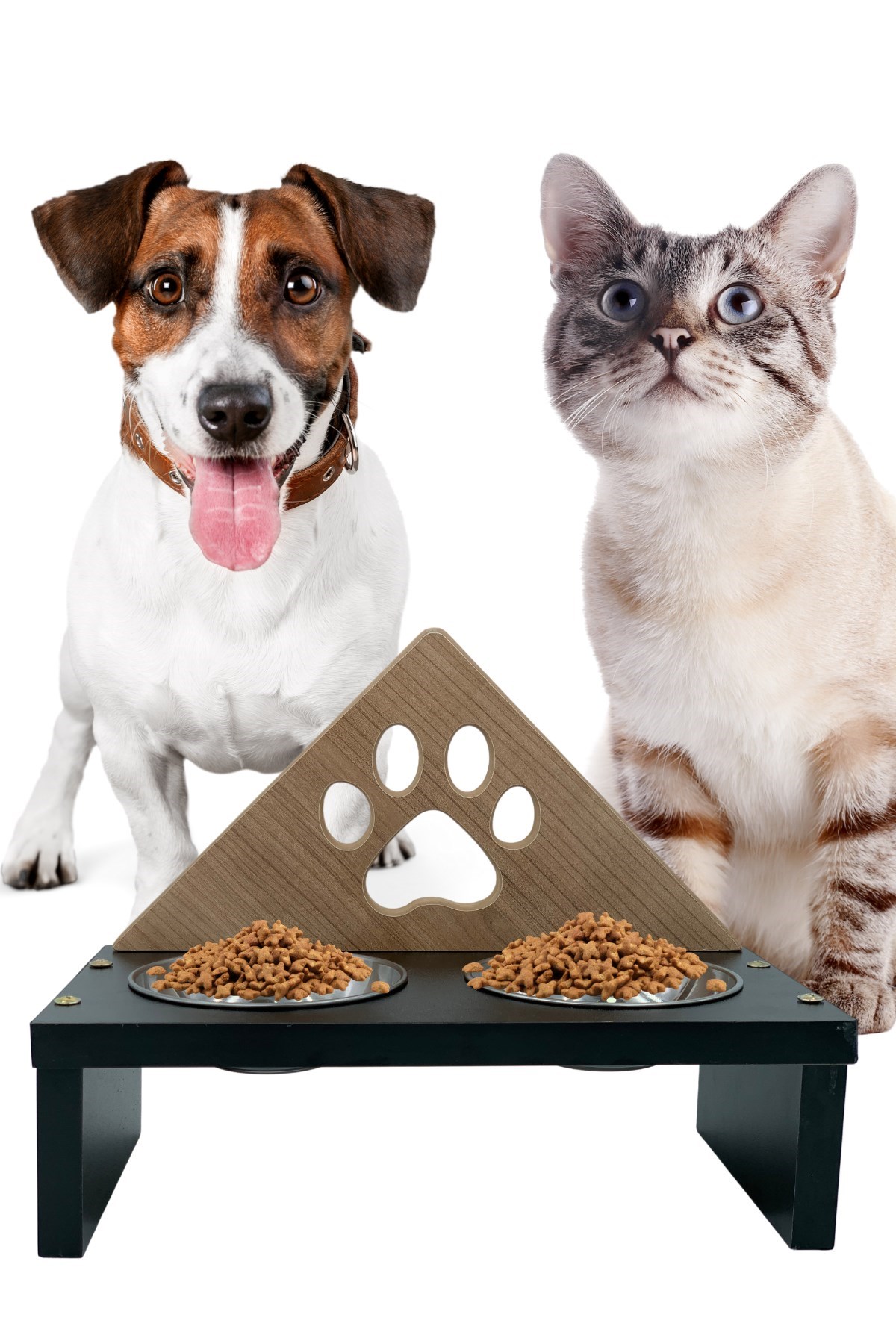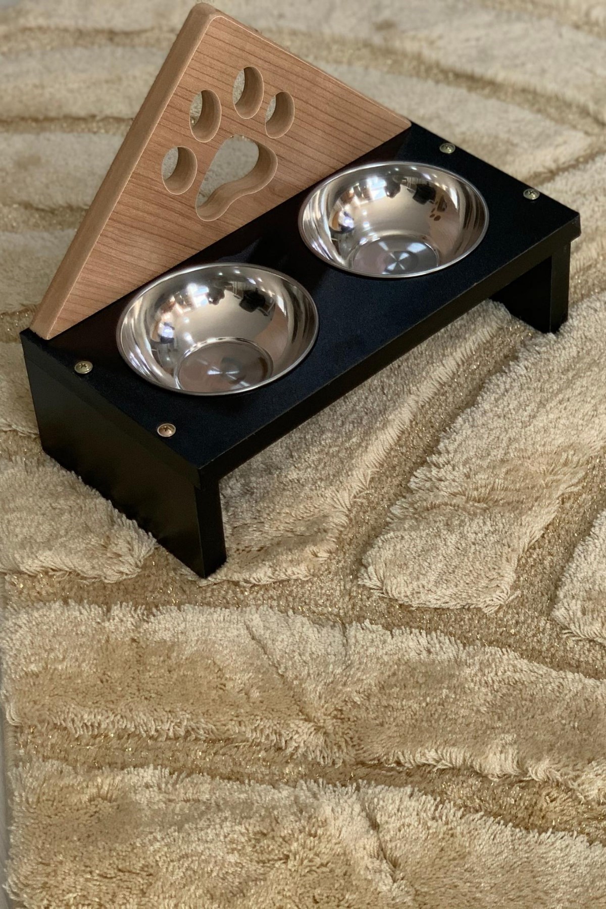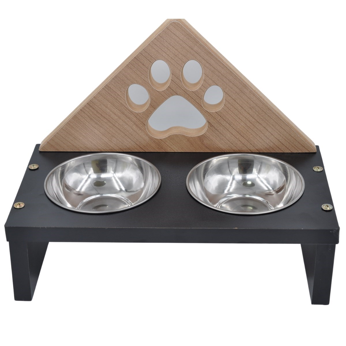 Buffer Ahşap ve Paslanmaz Çelik Kedi Köpek Mama Ve Su Kabı