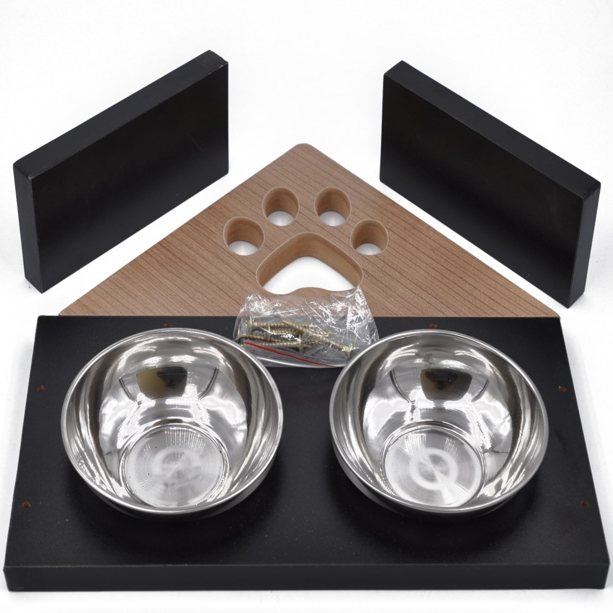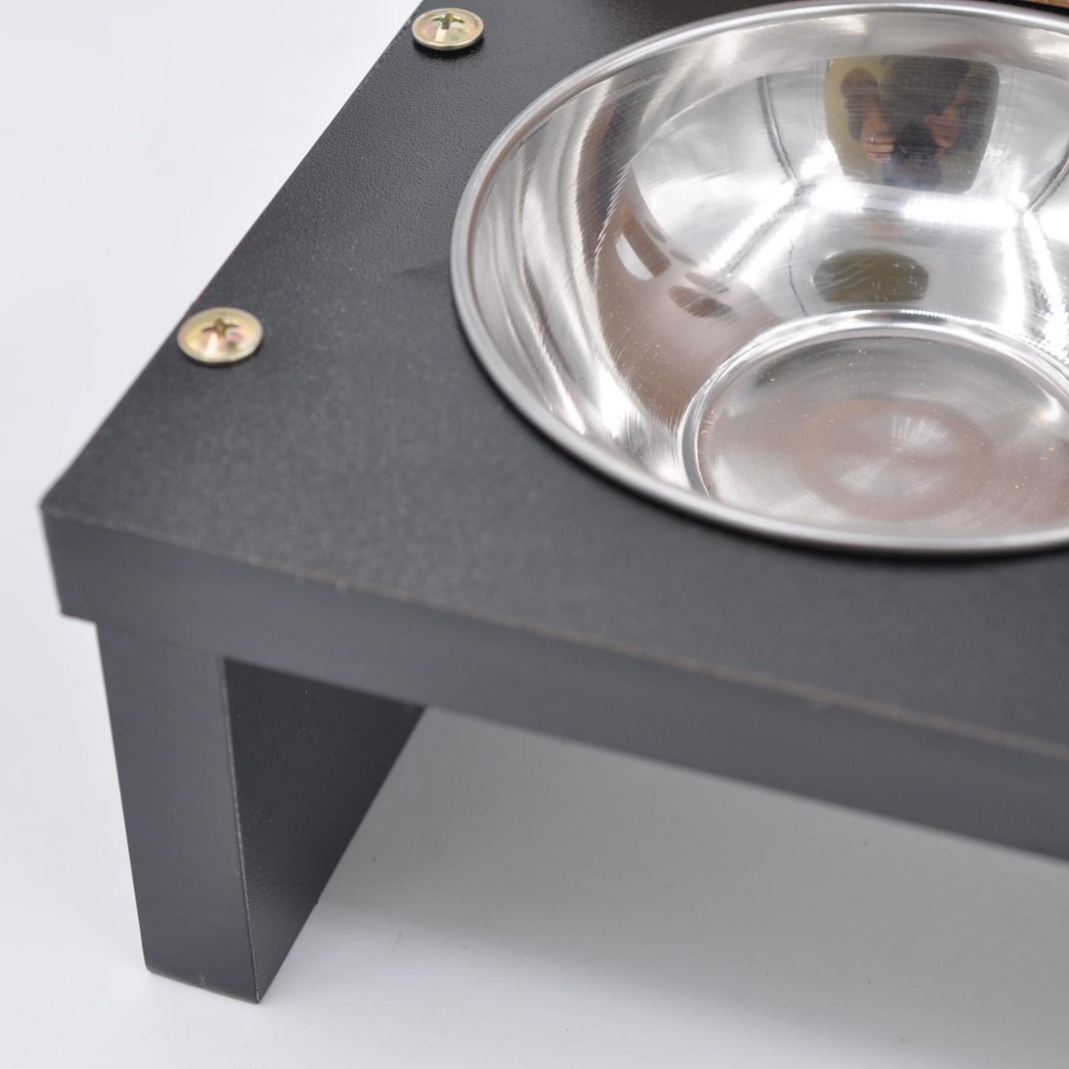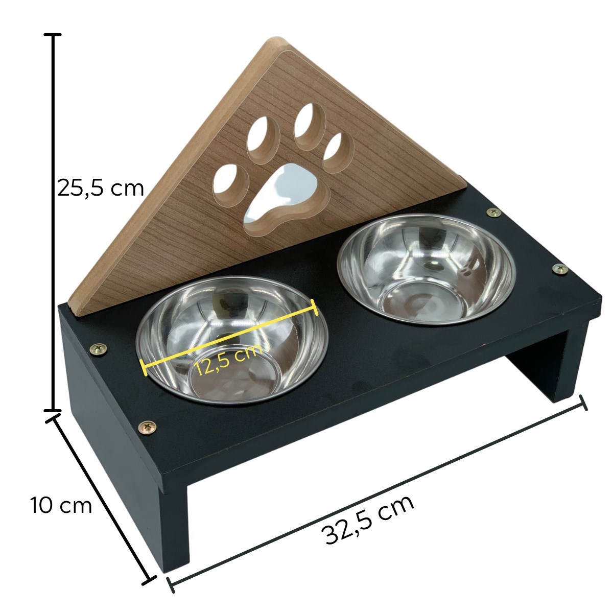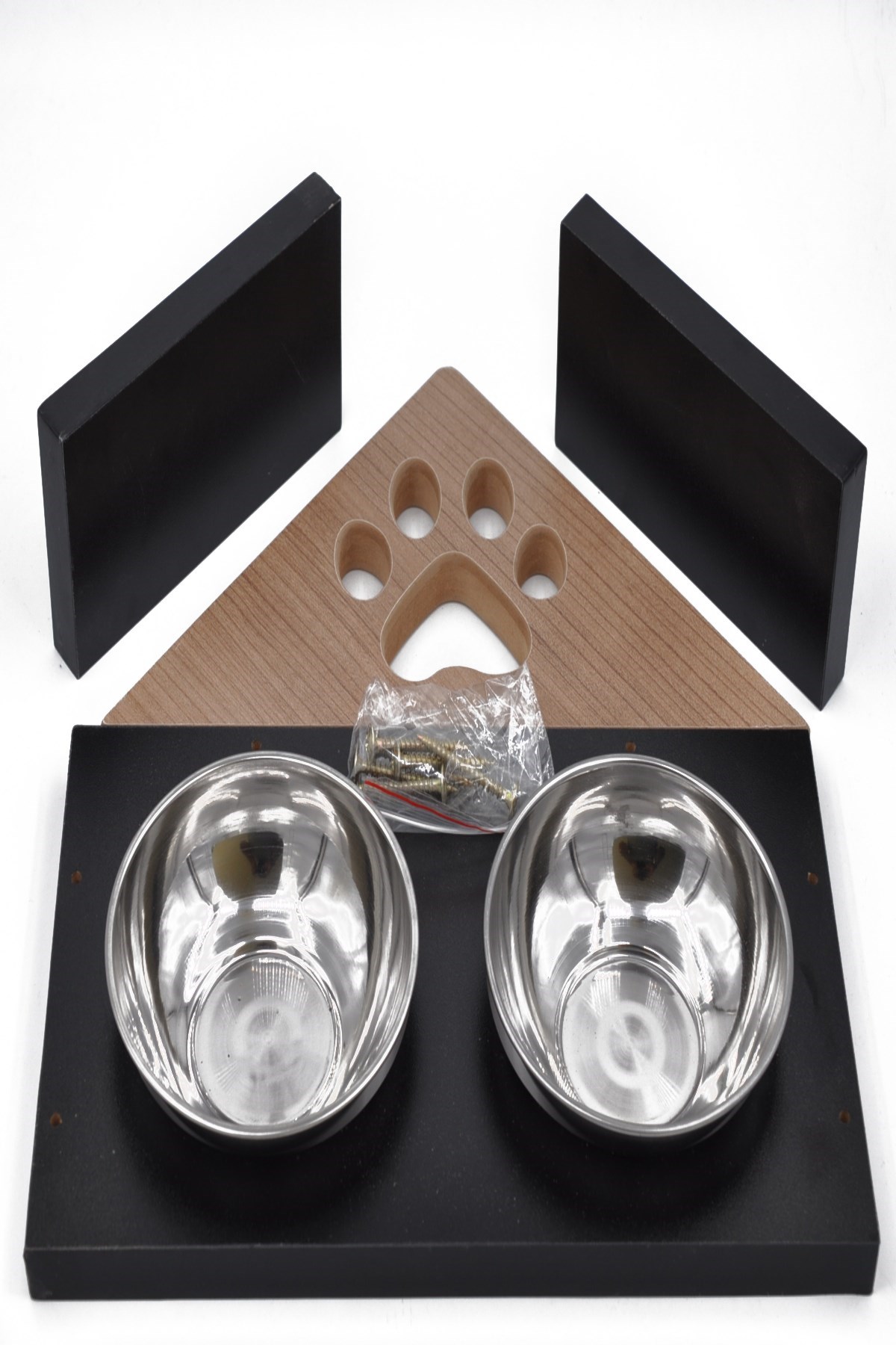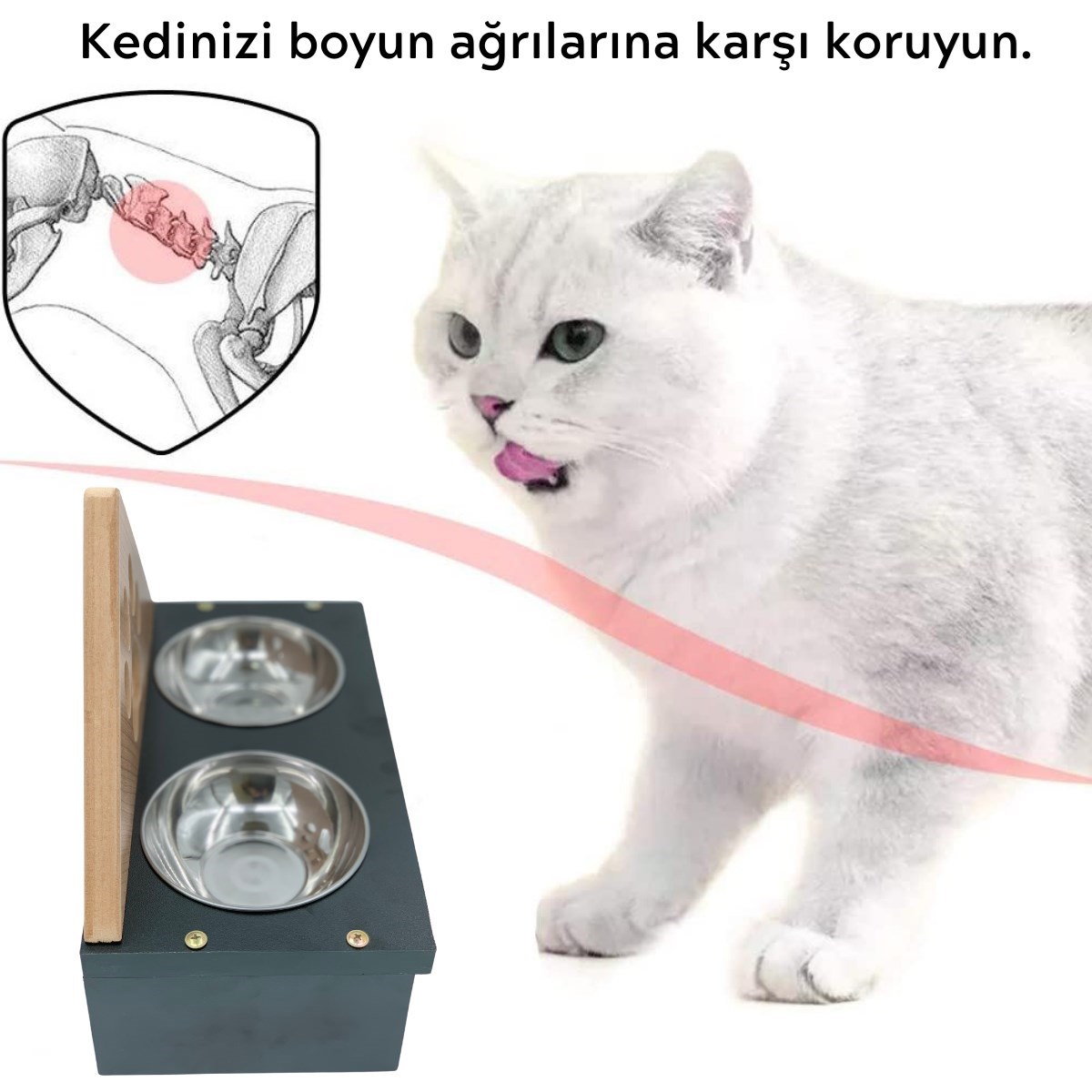 BUFFER® Ahşap Paslanmaz Çelik Kedi Köpek Toz Hazneli 2li Demonte Stand Metal Mama ve Su Kabı Kutusu