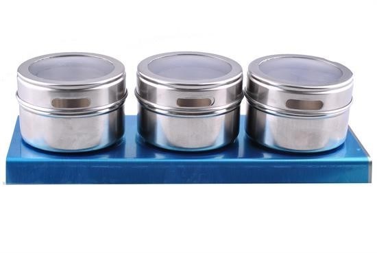 -Mıknatıslı Baharatlık , 3lü paket 304 L Paslanmaz Çelik -Boyutları : 6,3 cm çapında 4,5 cm yüksekliğinde -Ağırlık: 309 Gram -Kutu Ebatı:21x5x75 -Desi: 0,26 desi