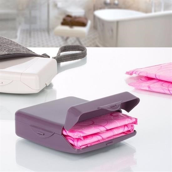 Kadınların en önemli ihtiyaçlarından olan pedlerin daha hijyenik bir şekilde yanlarında taşımaları için Çanta İçi Hijyenik Ped Kutusu özel olarak tasarlandı