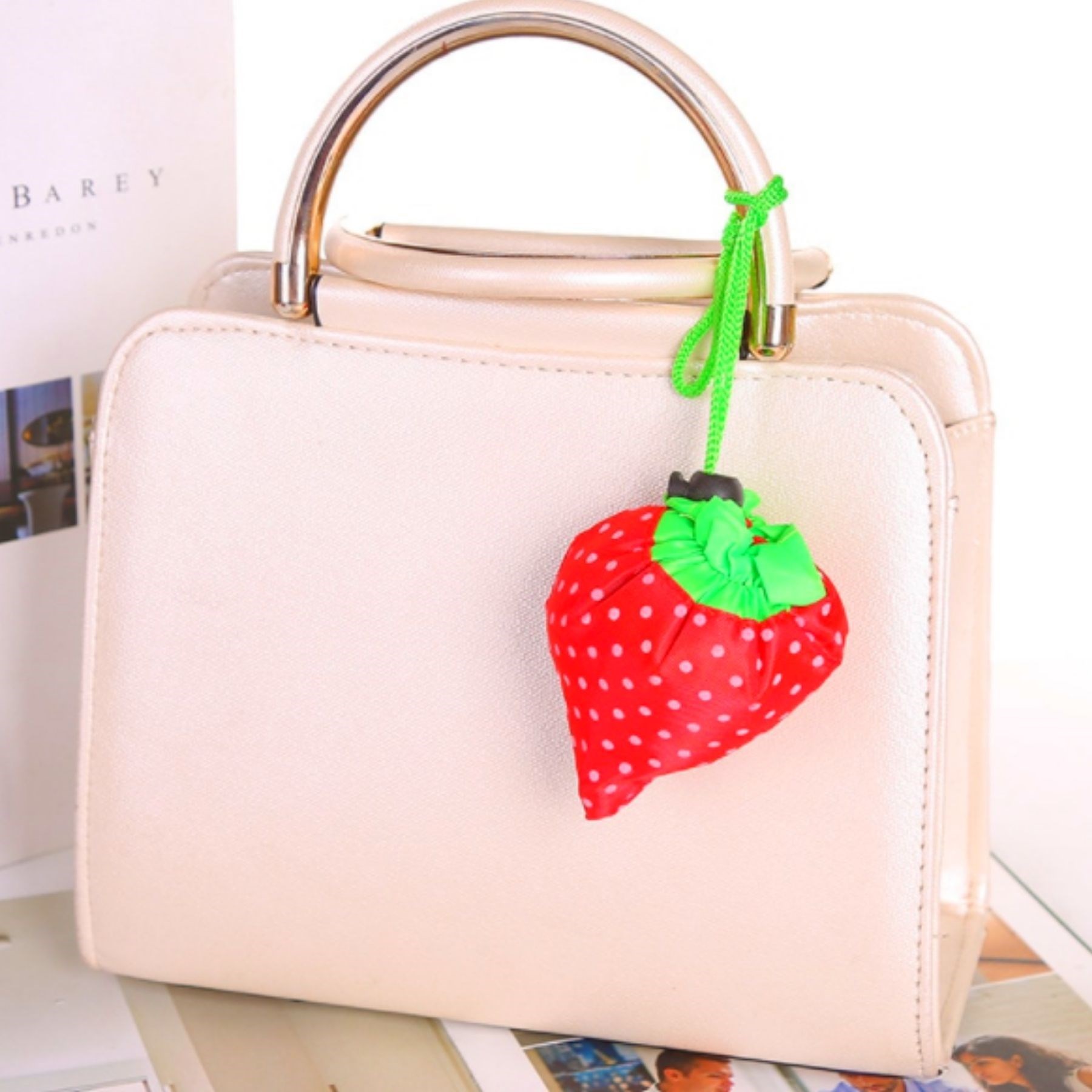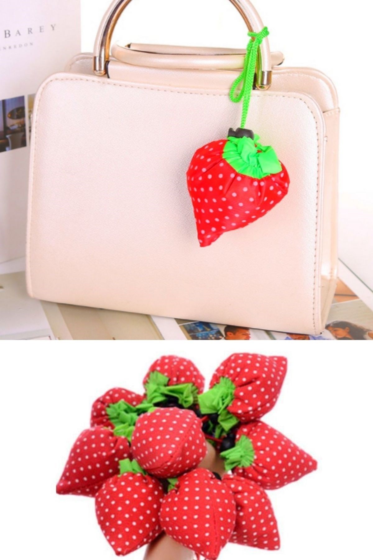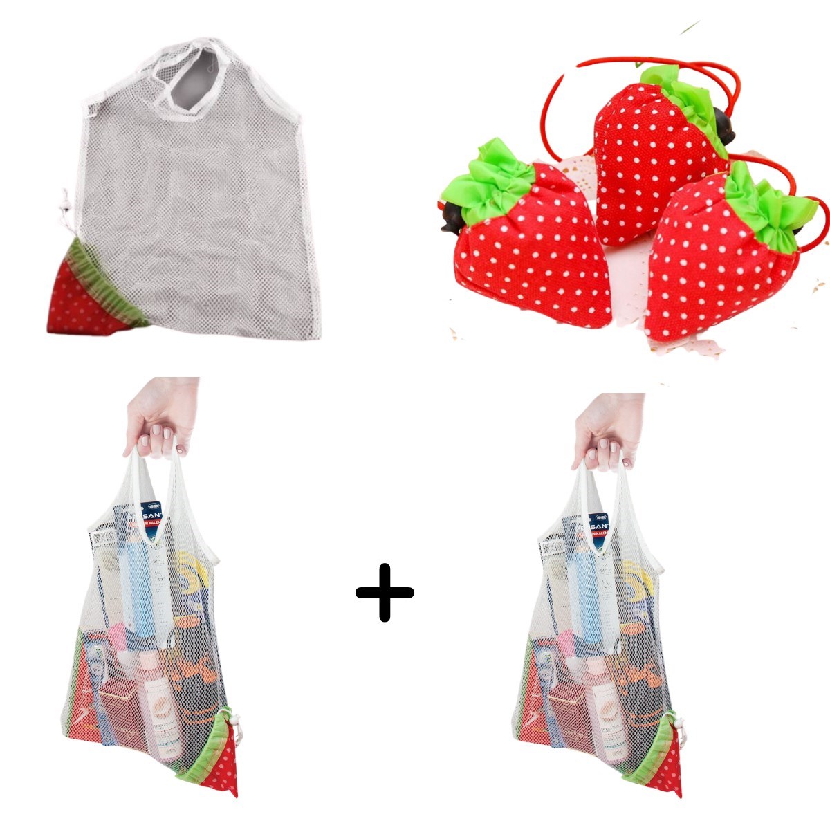 Market Pazar Alışveriş Taşıma Filesi Aparatı Poşeti Çilek görünümüne sahiptir
