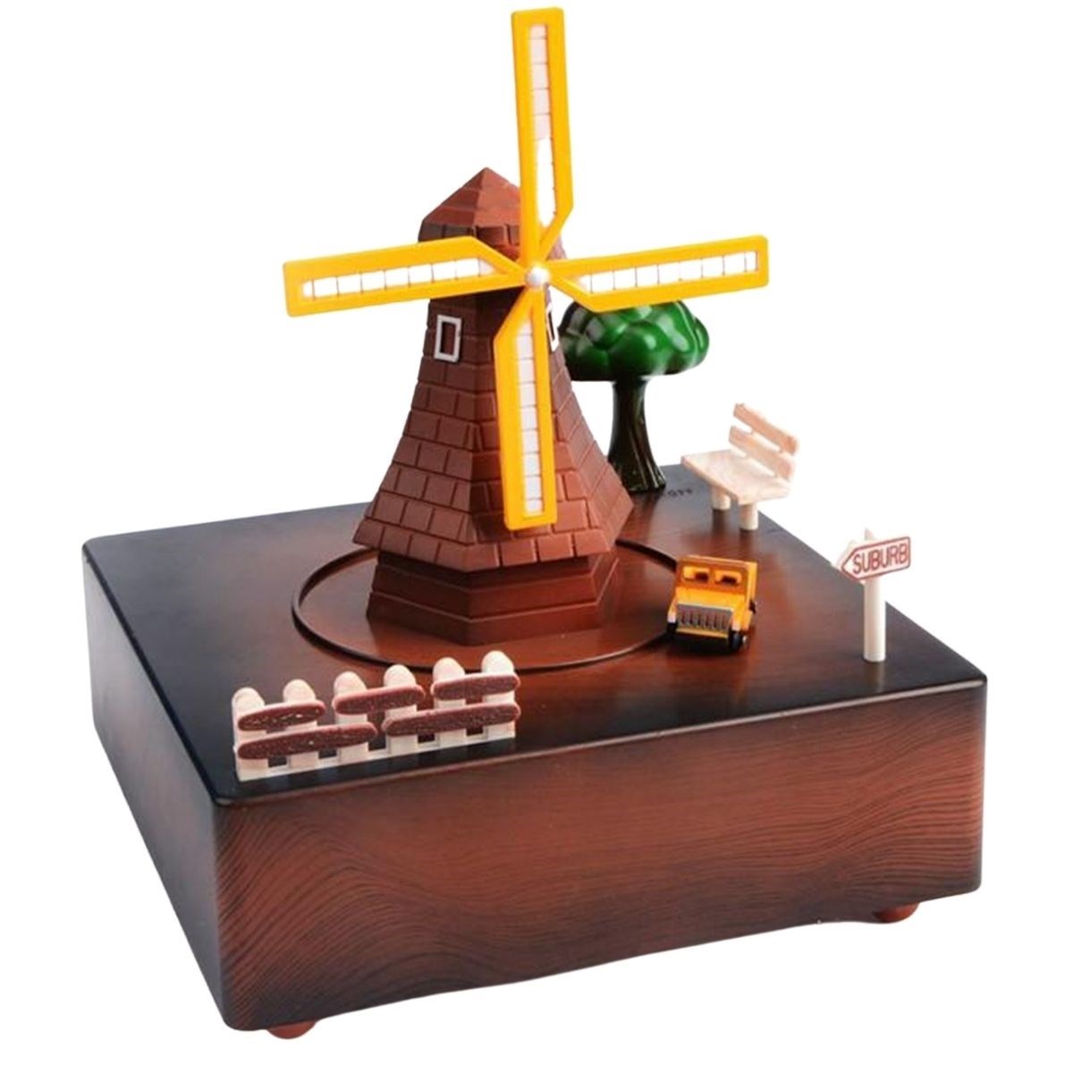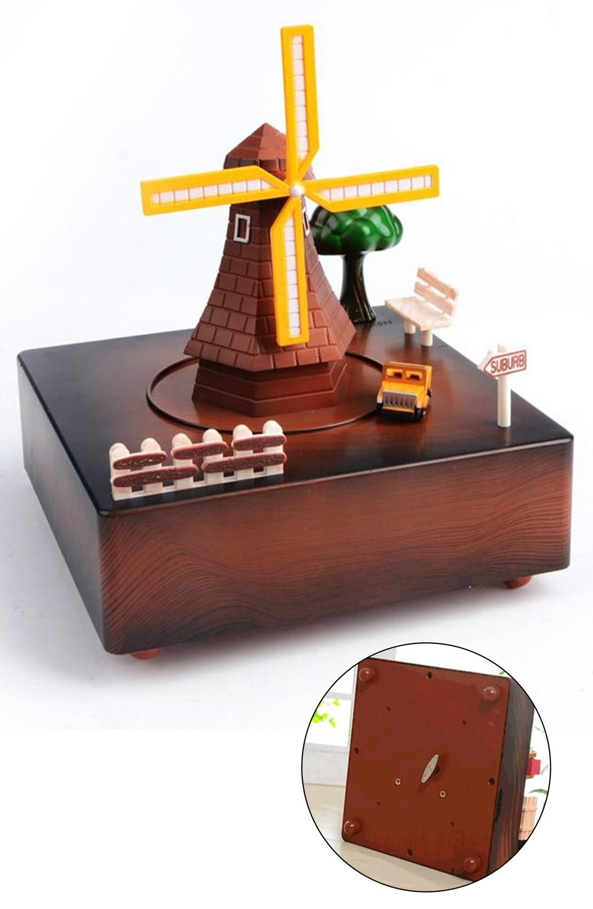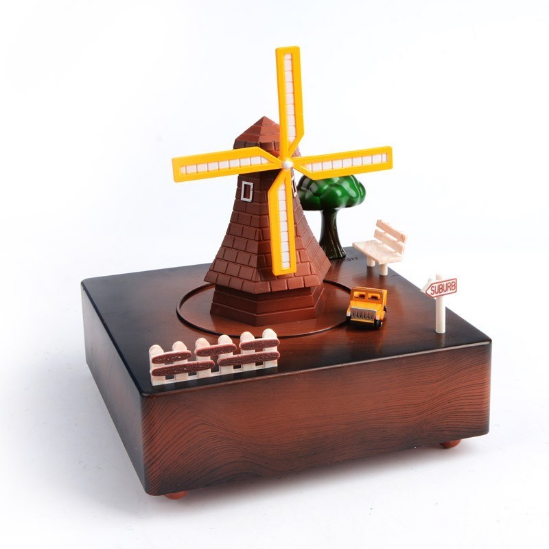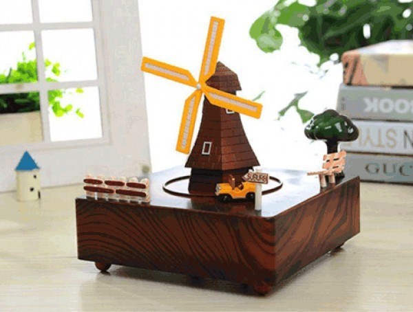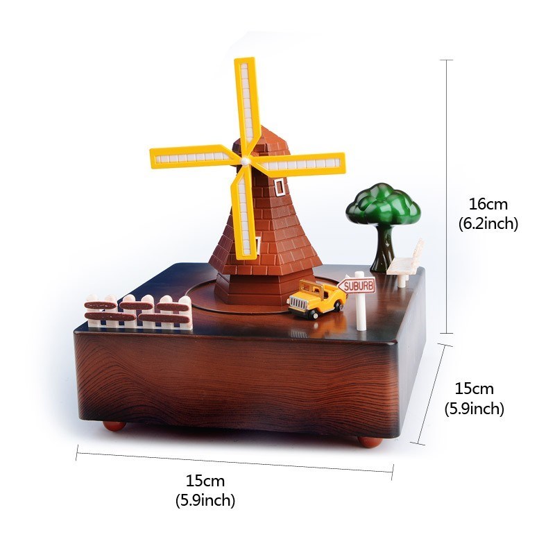 BUFFER® Dekoratif Mandallı Kurmalı Hareketli Arabalı Sesli Değirmen Müzik Kutusu
