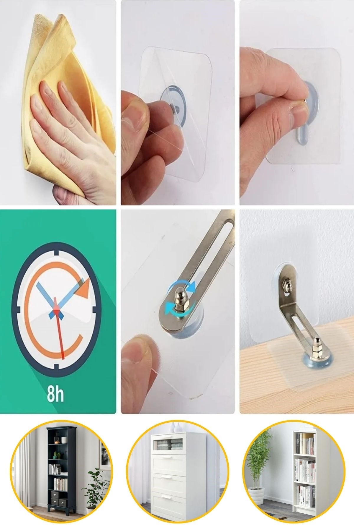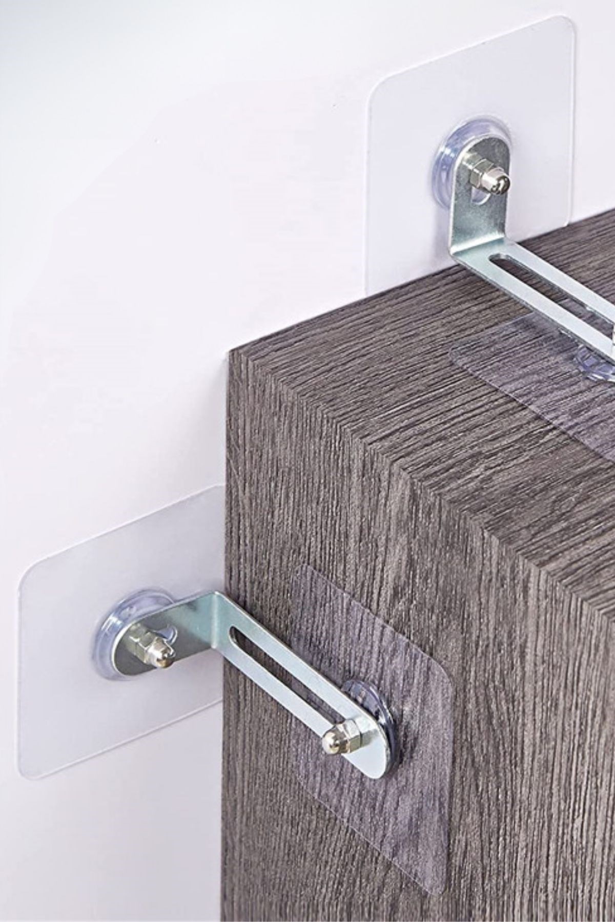 BUFFER® Deprem İçin Ultra Dayanıklı Çivisiz Duvarı Delmeden Ayarlanabilir Eşya Sabitleyici Aparat
