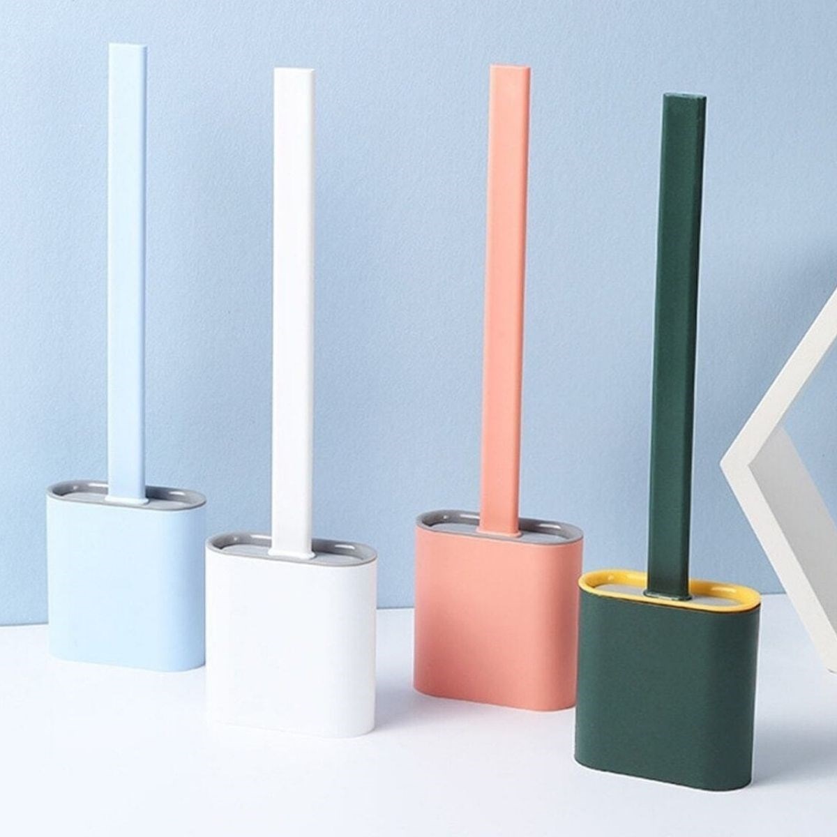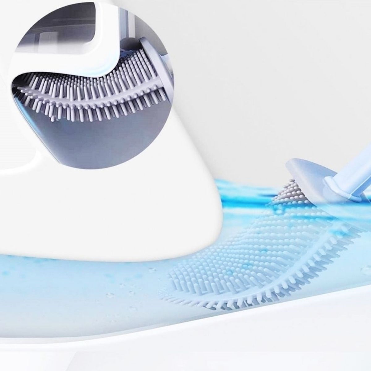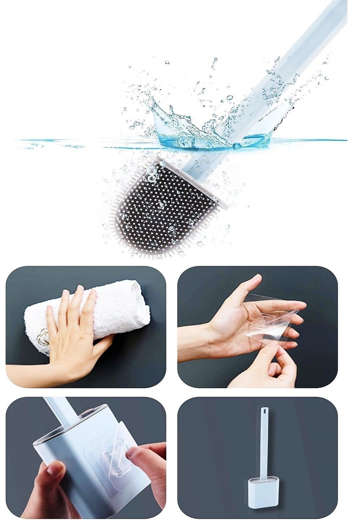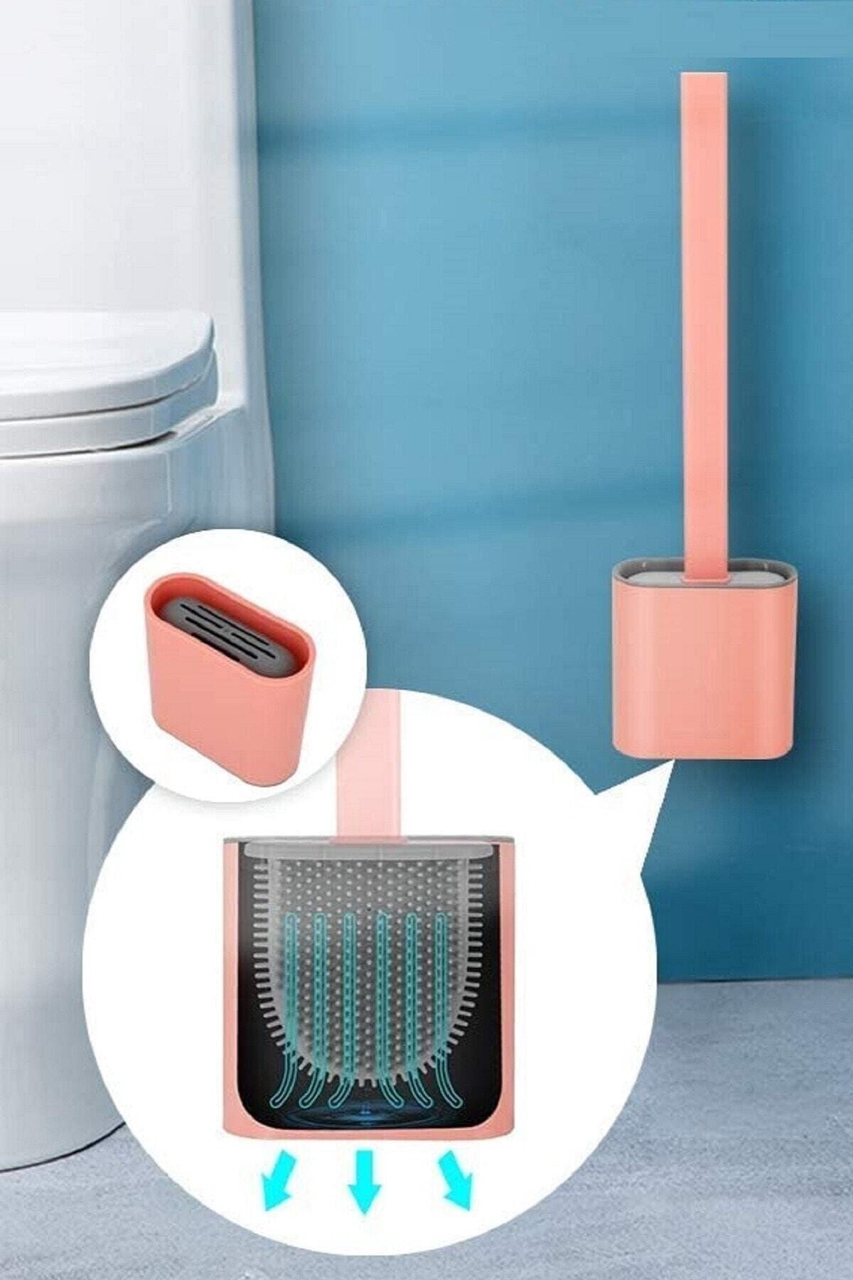 Yumuşak Silikon Başlıklı Tuvalet Fırçası Seti 360 derece her tarafa dönen esnek bir yapıya sahiptir