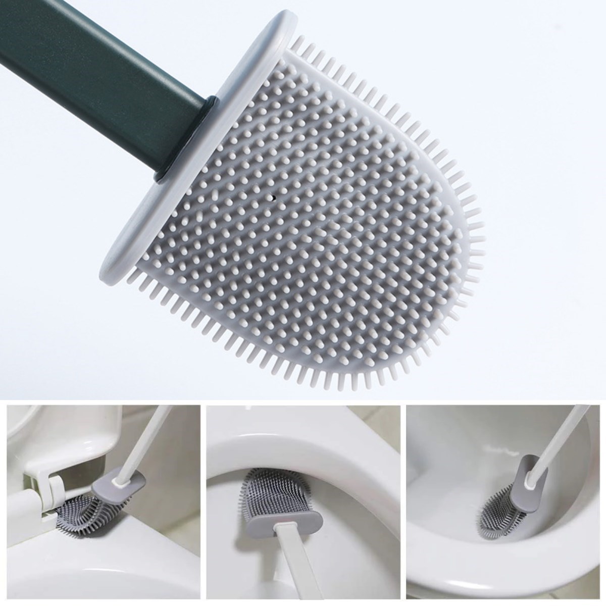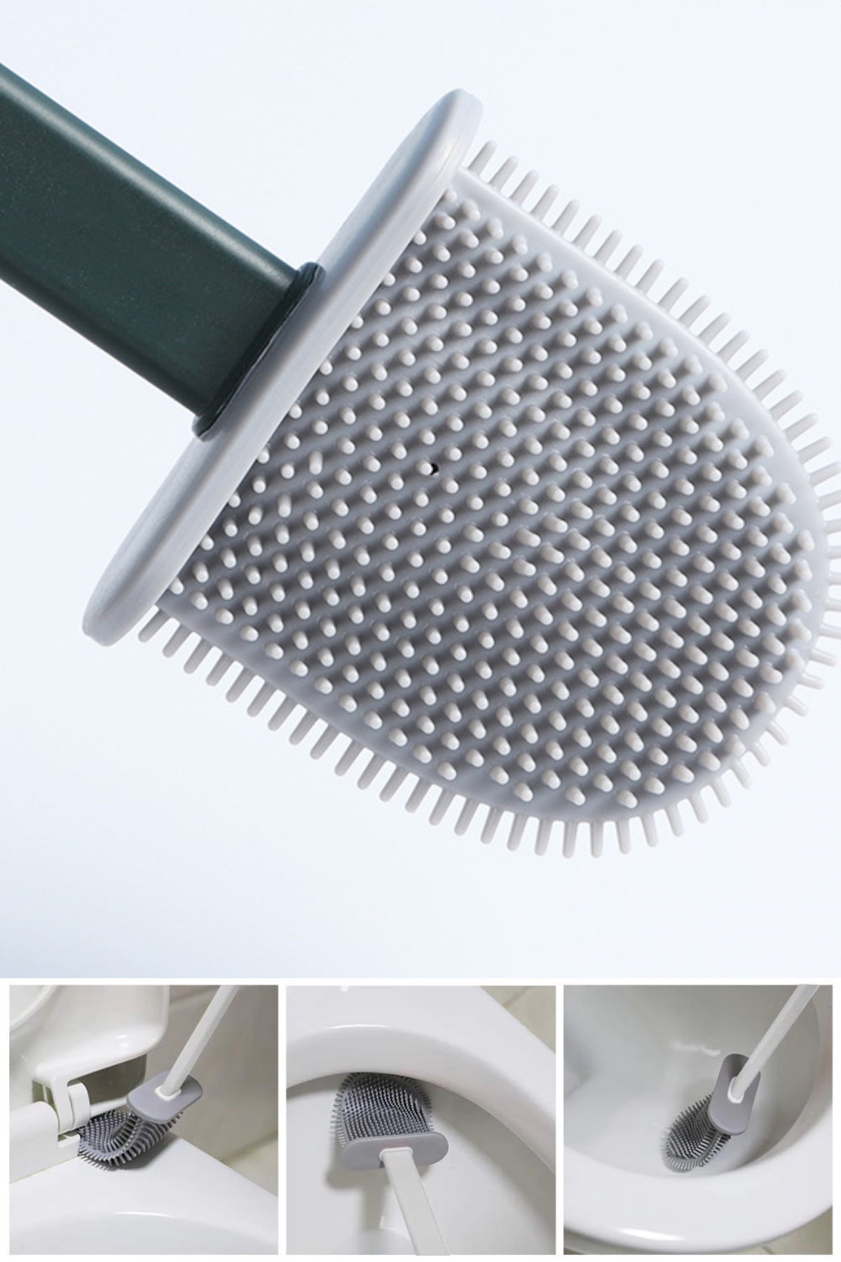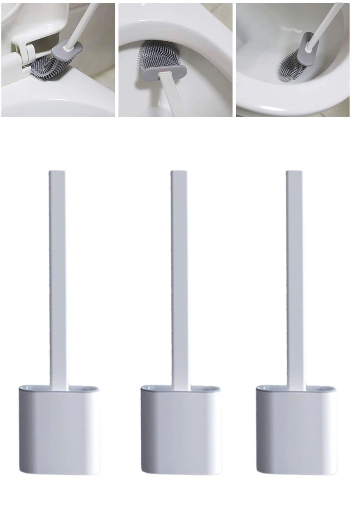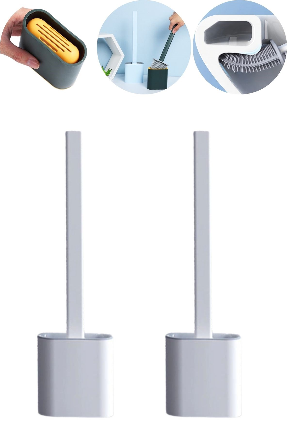 Yumuşak Silikon Başlıklı Tuvalet Fırçası Seti 360 derece her tarafa dönen esnek bir yapıya sahiptir
