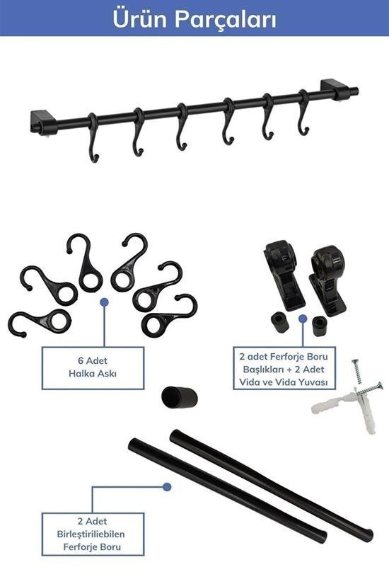 Siyah askı ve 6 adet kanca setinden oluşan bu ürün, hem mutfağınızda çok şık duracak hem de sürekli kullanabileceğiniz bir ürün olacakPratik bir şekilde her daim elinizin altında ve gözünüzün önünde olacak bu ürün mutfağınızın şıklığına şıklık katacak 6 kancadan oluşan ve duvara monte edilebilen ürüne servis kaşıklarınızı, kupalarınızı, muglarınızı, kahve ve çay fincanlarınızı , mutfak havlularınızı, mutfak bezlerinizi asabilirsiniz