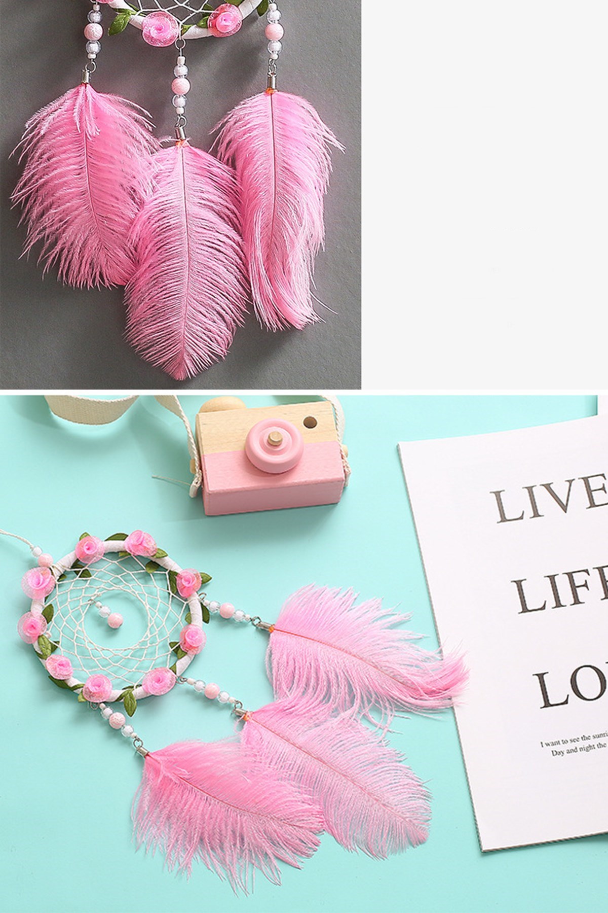 El Yapımı Kuş Tüyü Ve Led Işıklı Düş Kapanının ucundaki kuş tüyleri ve led aydınlatması ile dekorasyonunuzu tamamlayacak parçalardan olacaktır