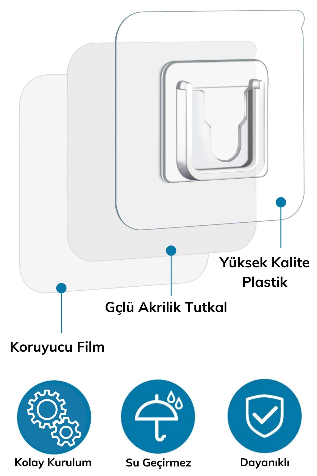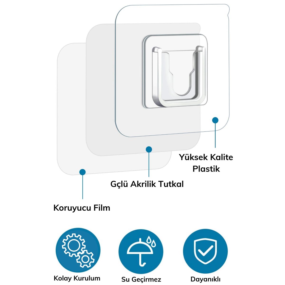 Buffer Eşya Sabitleme Askısı 10 Adet Şeffaf Çift Taraflı Yapışkanlı Geçmeli Klips