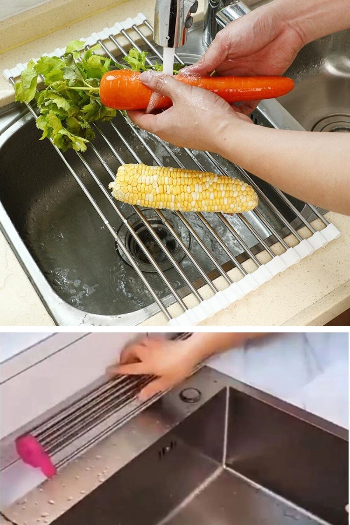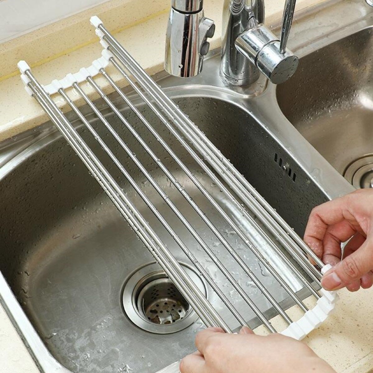 BUFFER® Evye Üstü Katlanır Nihale Paslanmaz Çelik Pratik Sebze Meyve Bulaşık Kurutma Süzgeci