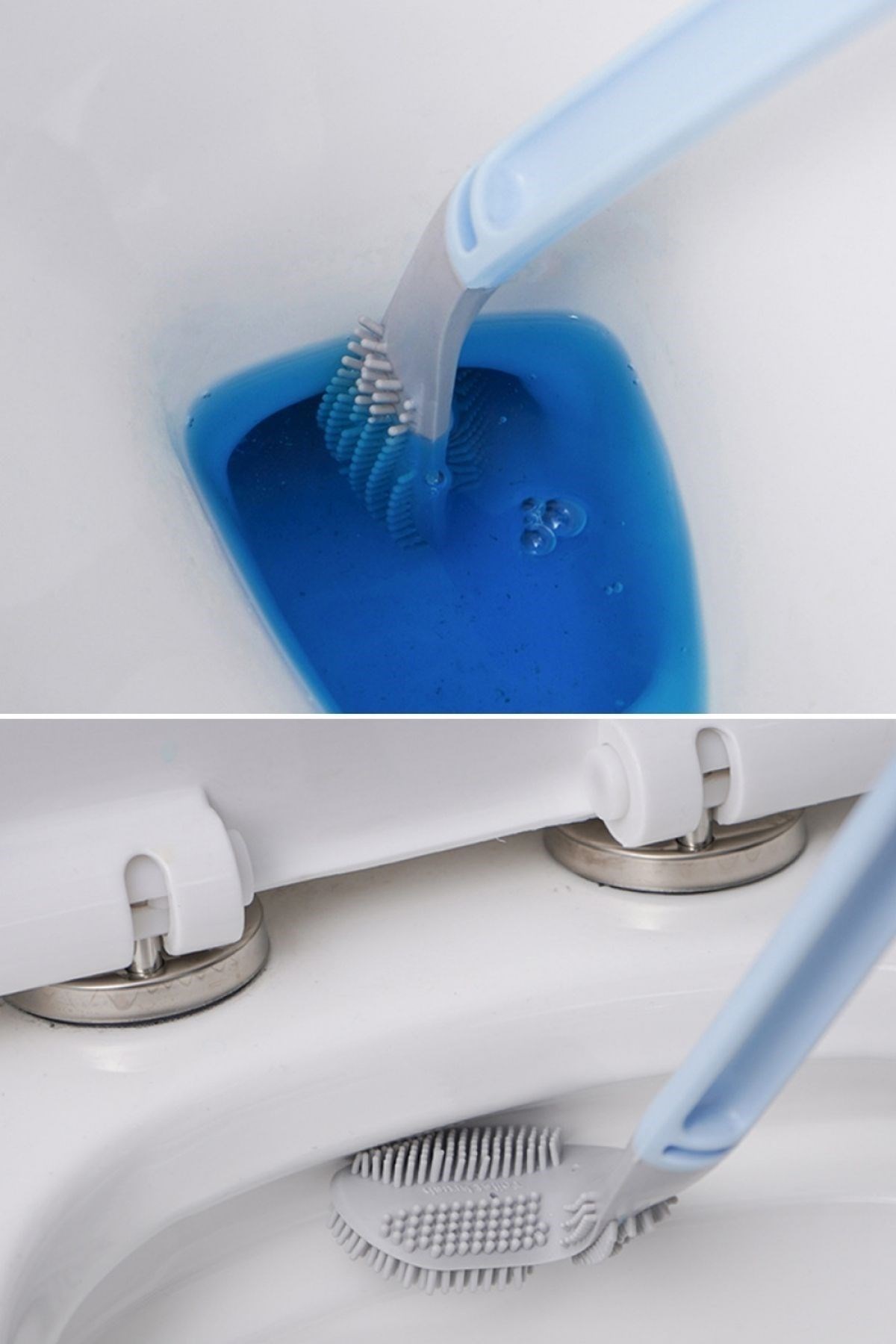 Yüksek kaliteli silikon malzemelerden yapılmış fırçanın tırtıkları klozete ve fayansa zarar vermez iz bırakmaz Saç veya kıl gibi maddelerin dolaşmasına elverişli olmadığı için temizliği kolaydır