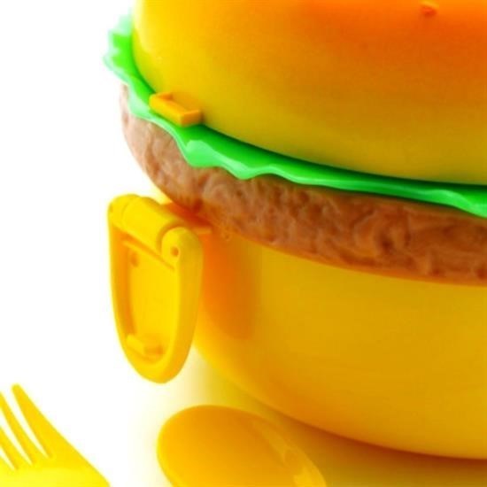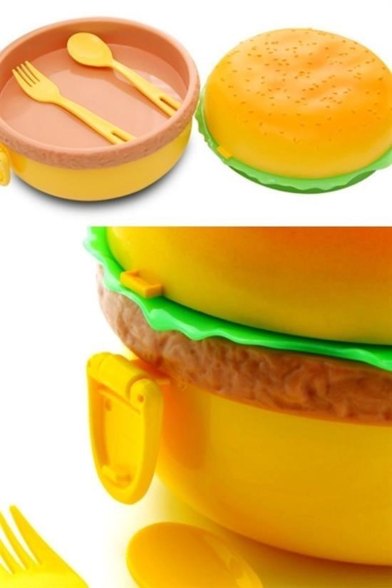 Hamburger Tasarımlı Çatal Bıçaklı Saklama ve Beslenme Kabı Kutusu
