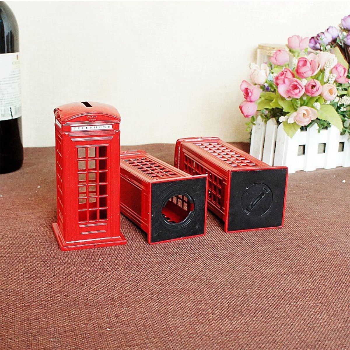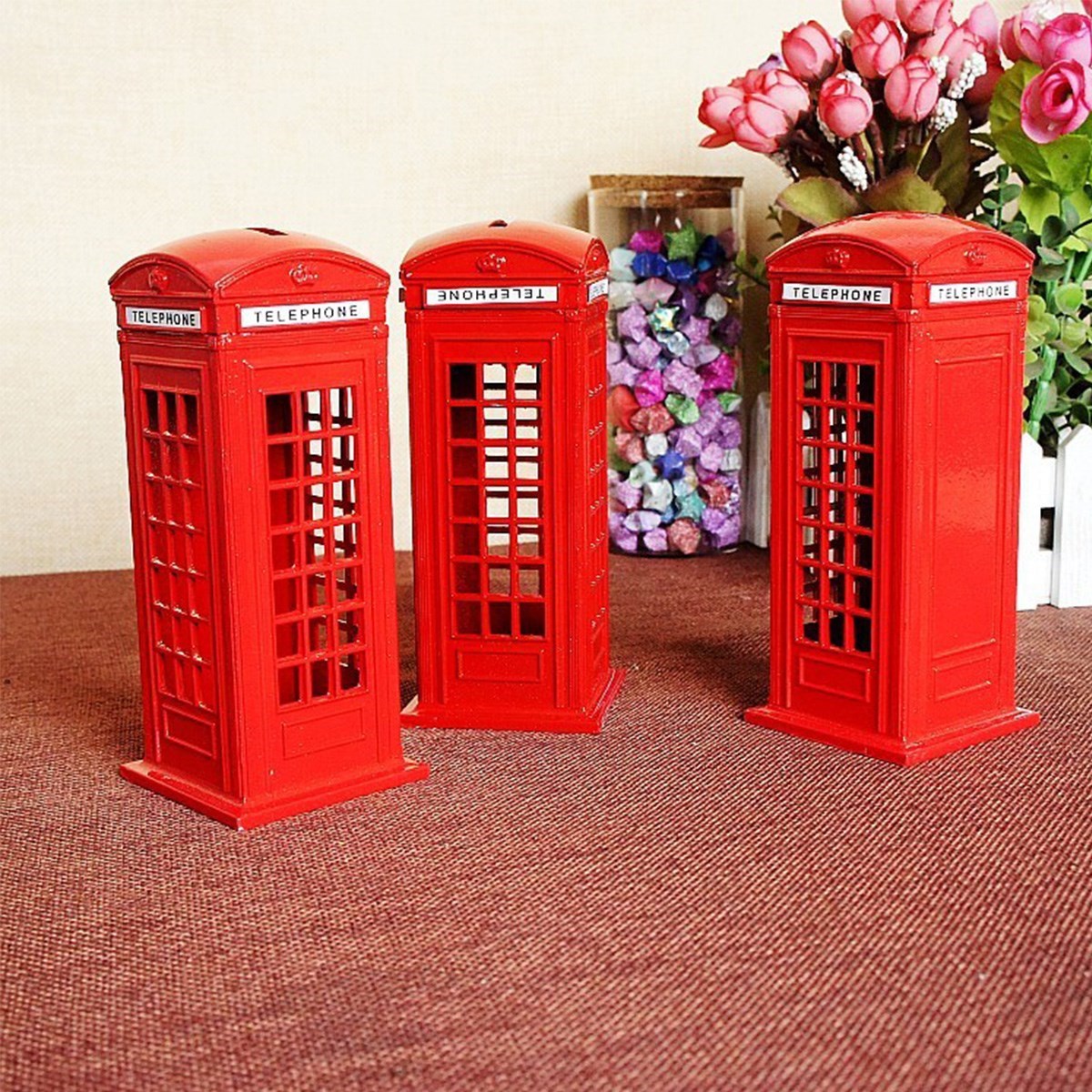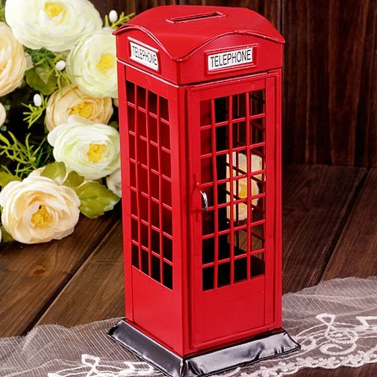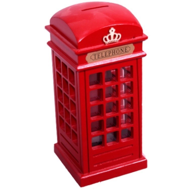 • Orjinal İngiliz telefon kulübesi kumbara Metalden yapılmış olan bu kulübede attığınız her jeton birikim olarak dönüyor üstelik evinizi işyerinizi süslüyor
