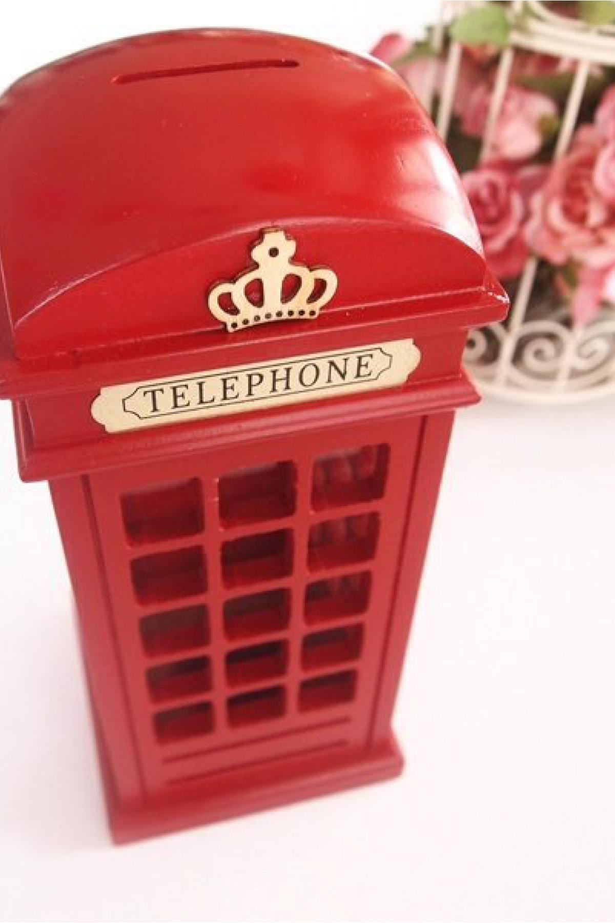 Buffer İngiliz Telefon Kulübesi Şeklinde Dekoratif Kırmızı Metal Kumbara