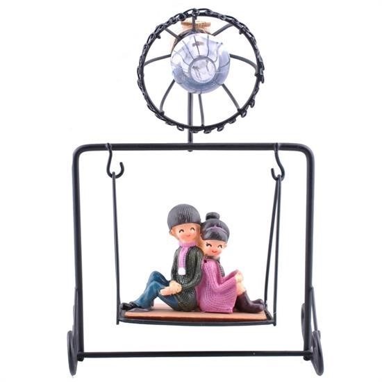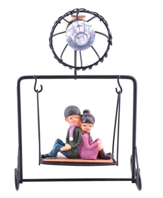 Işıklı Salıncakta Romantk Genç Aşıklar Dekoratif Ahşap Biblo