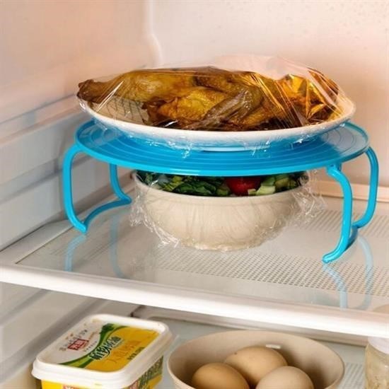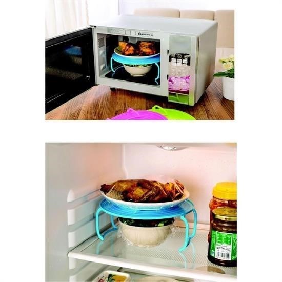 Katlanabilir Ayaklı Mutfak Rafını ister buzdolabında ister mikrodalga fırınınızda malzemelerinizi üst üste yerleştirebilir aynı zamanda da koruyucu kapak olarak kullanabilirsiniz