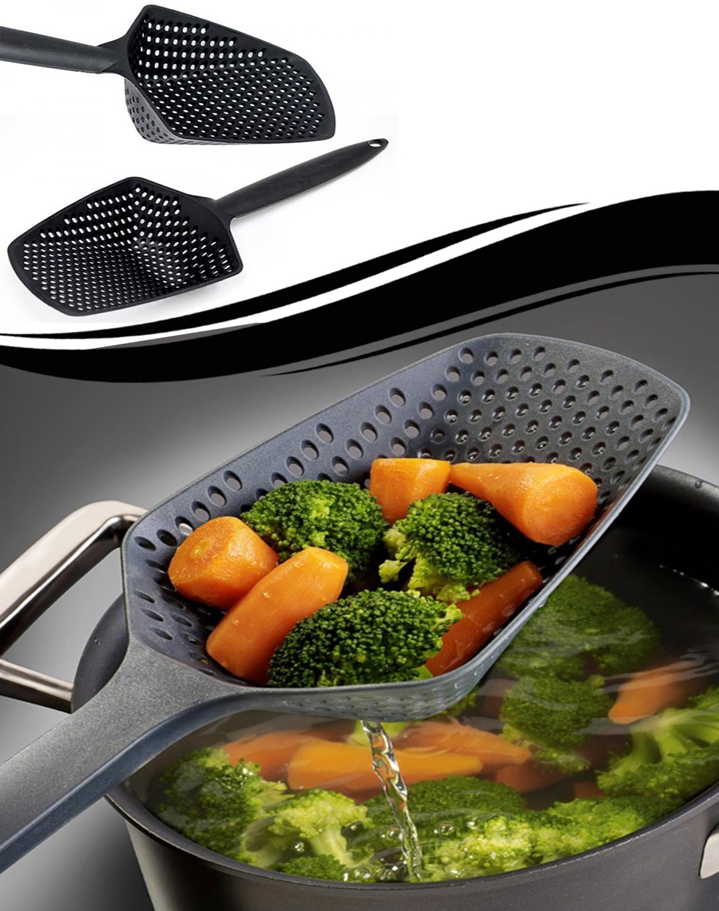 Isıya Dayanıklı Plastik Süzgeçli Kepçe /Kızartma ve Sebze Haşlamak için Çok Amaçlı Süzgeçli Kepçe
