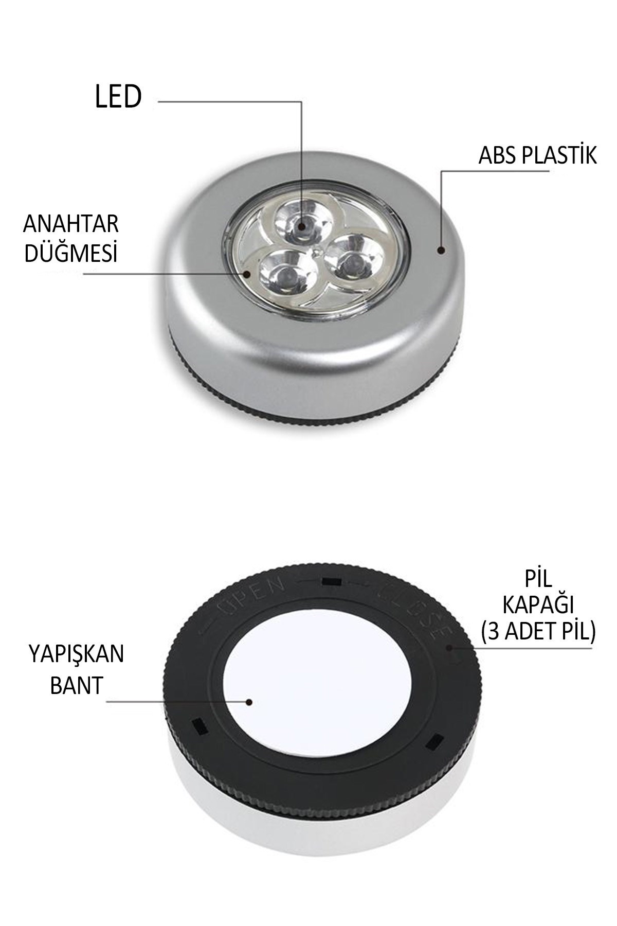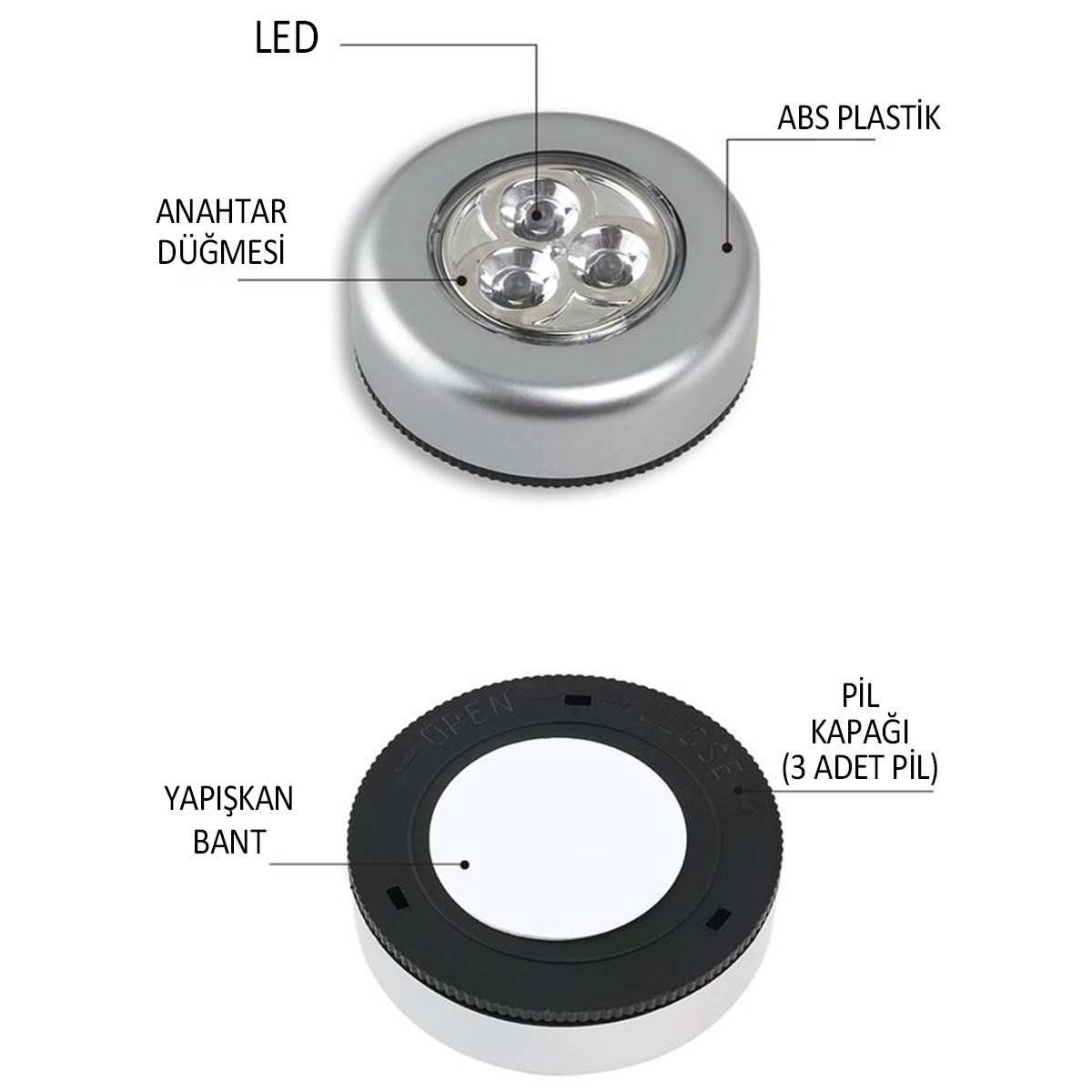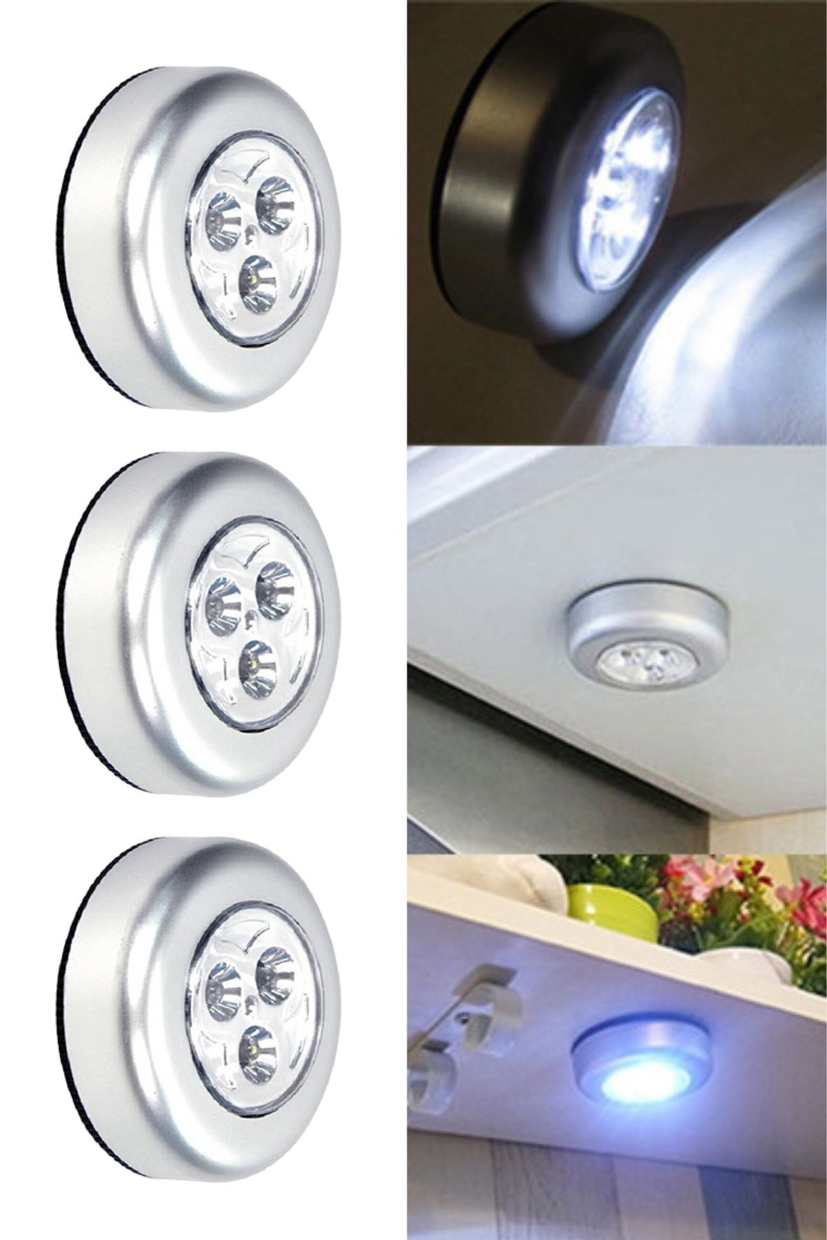 Kablosuz Dolap Spot Lamba Dokunmatik Pilli Led Lamba 3 Ledli Dolap Mutfak İçi Aydınlatma Kurulumu