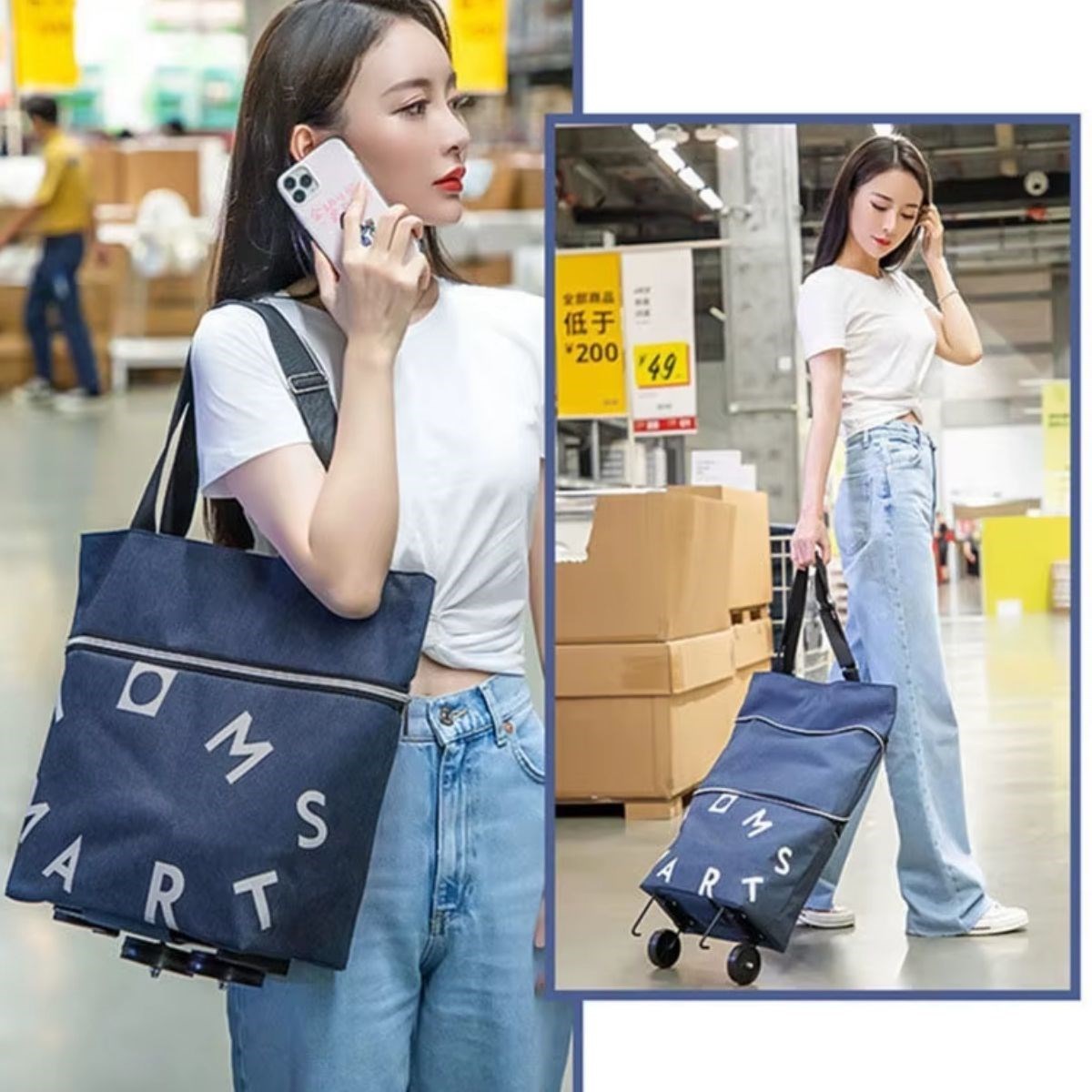 🚀 Portatif, şık ve pratik! Katlanabilir Tekerlekli Market Çantası ile alışverişlerinizi daha kolay ve konforlu hale getirin! 💼💖