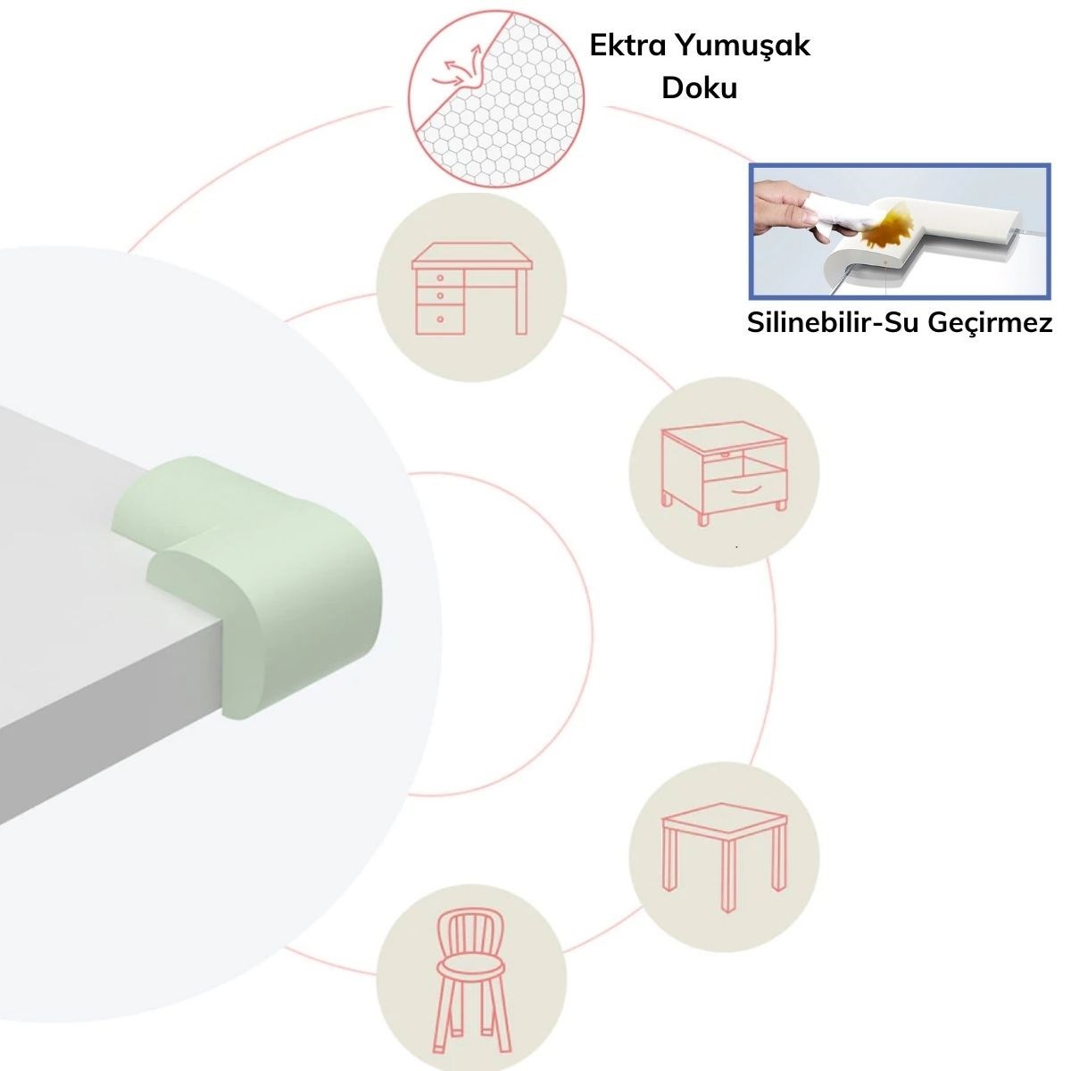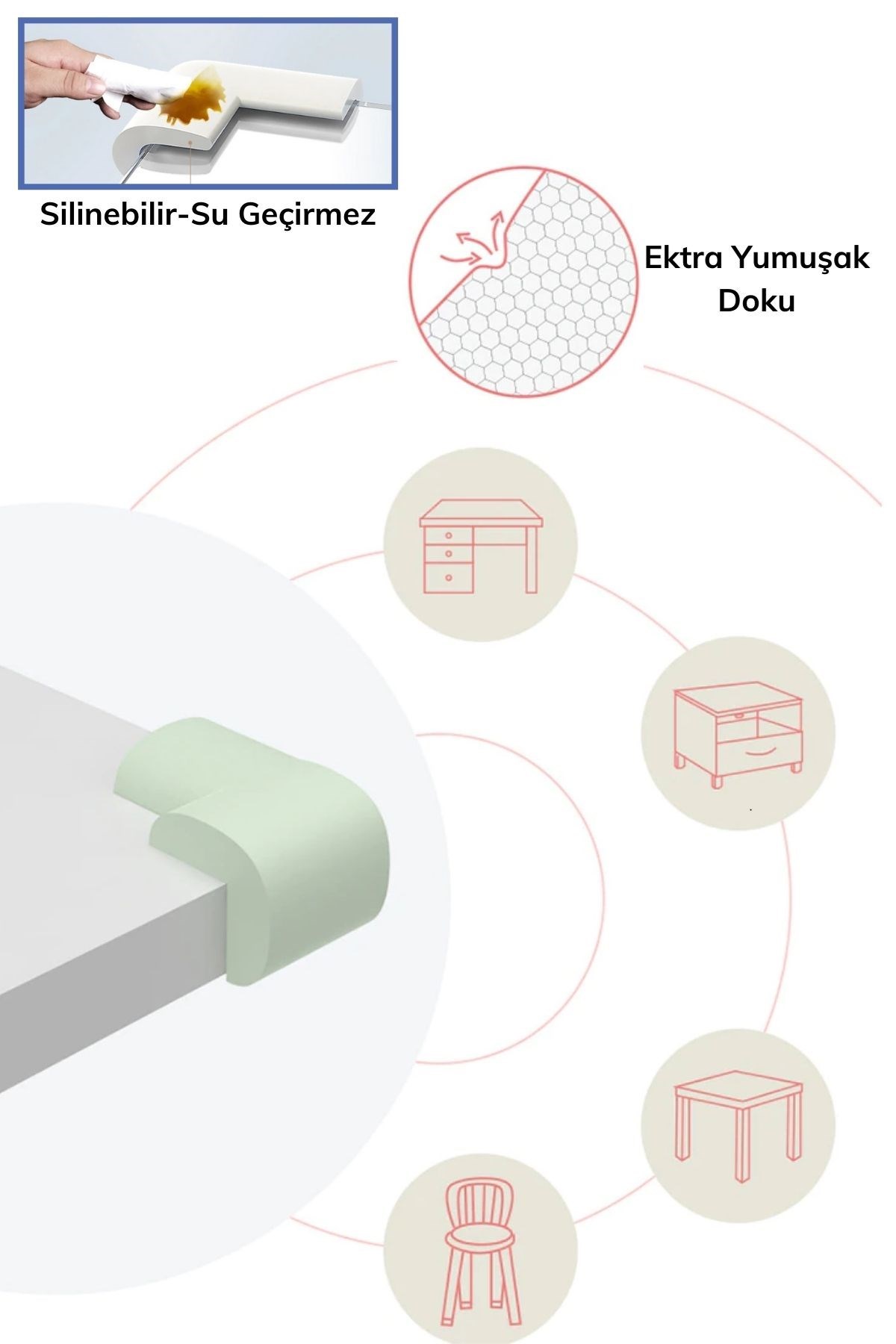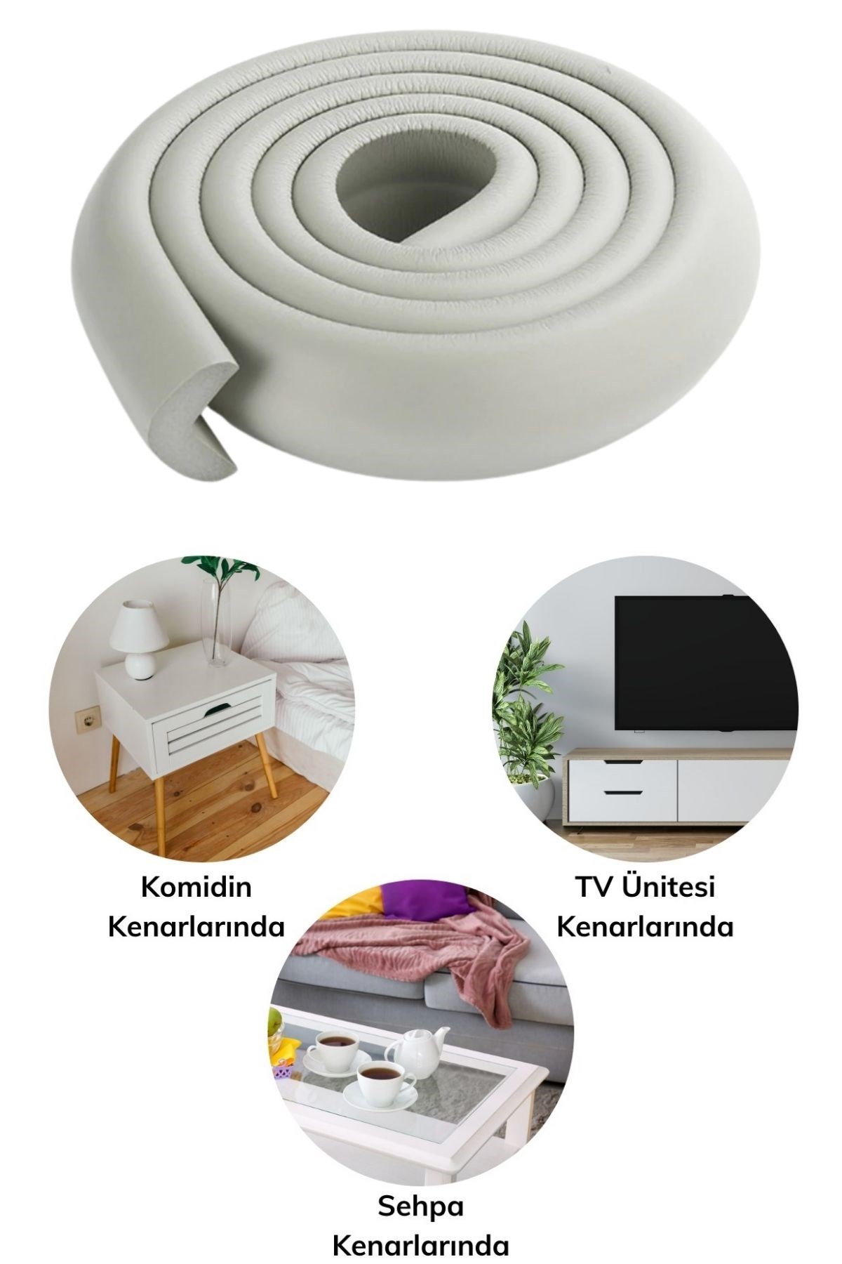 Masa, sehpa, TV üniteleri, duvar ve tezgah gibi keskin ya da sivri köşe kenarlardan çocuklarınızın zarar görmesini engellemeye yarar