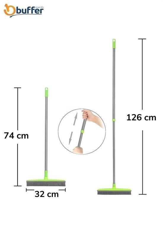 Ekstra uzayabilen ve ayarlanabilir sapı farklı yükseklikteki insanlar için kullanım rahatlığı sağlar Uzun boylu insanların kullanması için yeteri uzunluğa sahiptir ve süpürme sırasında eğilmeyi önler Kaçucuk Kılların arasına giren saç,toz, kıl veya tüyleri BUFFER® Kauçuk Uçlu Teleskopik Saplı Uzayabilen Temizlik Fırçası!nı musluk altına akan suya tutarak pratik bir şekilde yıkayabilirsiniz Diğer Fırçalara göre su yardımı ile kir çok rahat fırçayı terk edecektir
