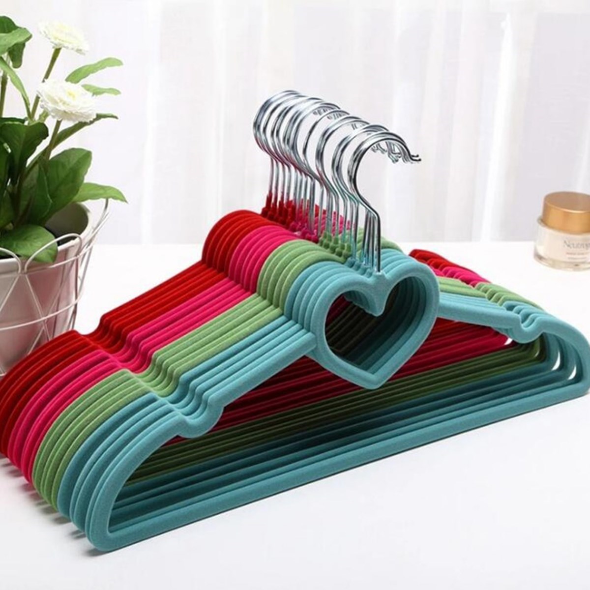 Kadife dokusu, soft renkleri ve kıyafetlerin düşmemesini sağlayan oyuk bölümleriyle elbiselerinizi kolayca asmanızı sağlayan bu şık kadife askı dolap içinde dahi şıklığından ve düzeninden vazgeçmeyenler için tasarlandı Evin gizli kurtarıcıları olan lüx kadife elbise gömlek askısı sizleri bekliyor