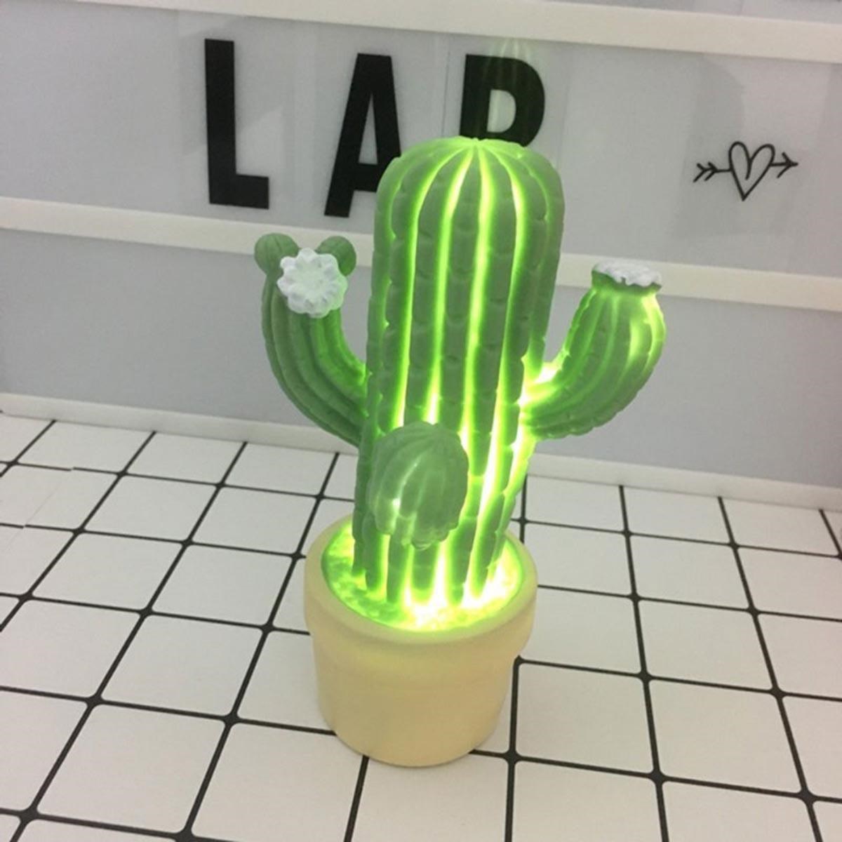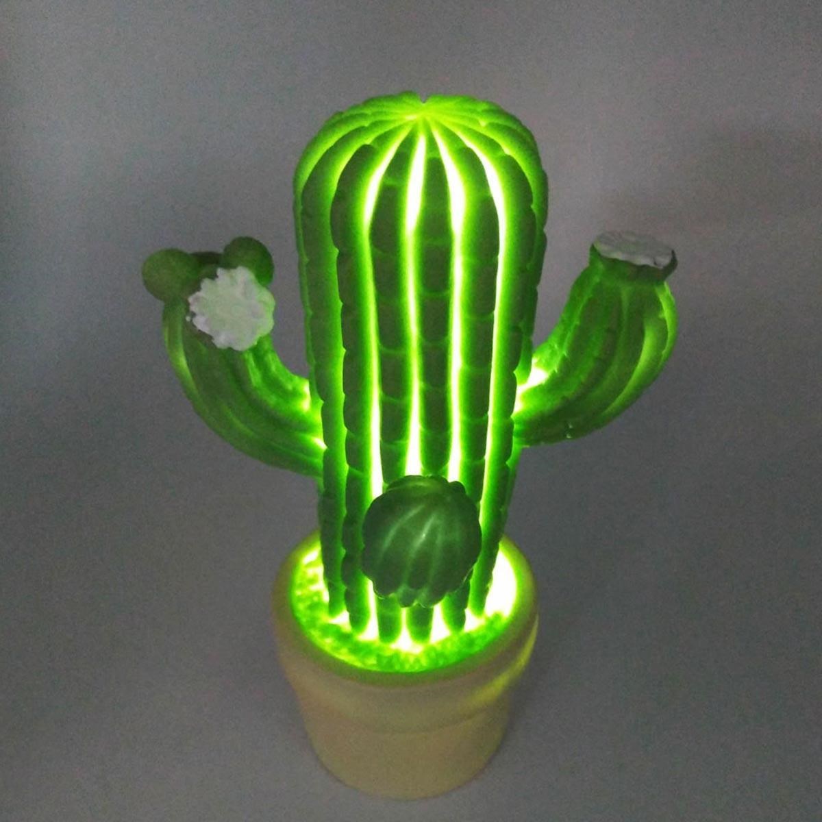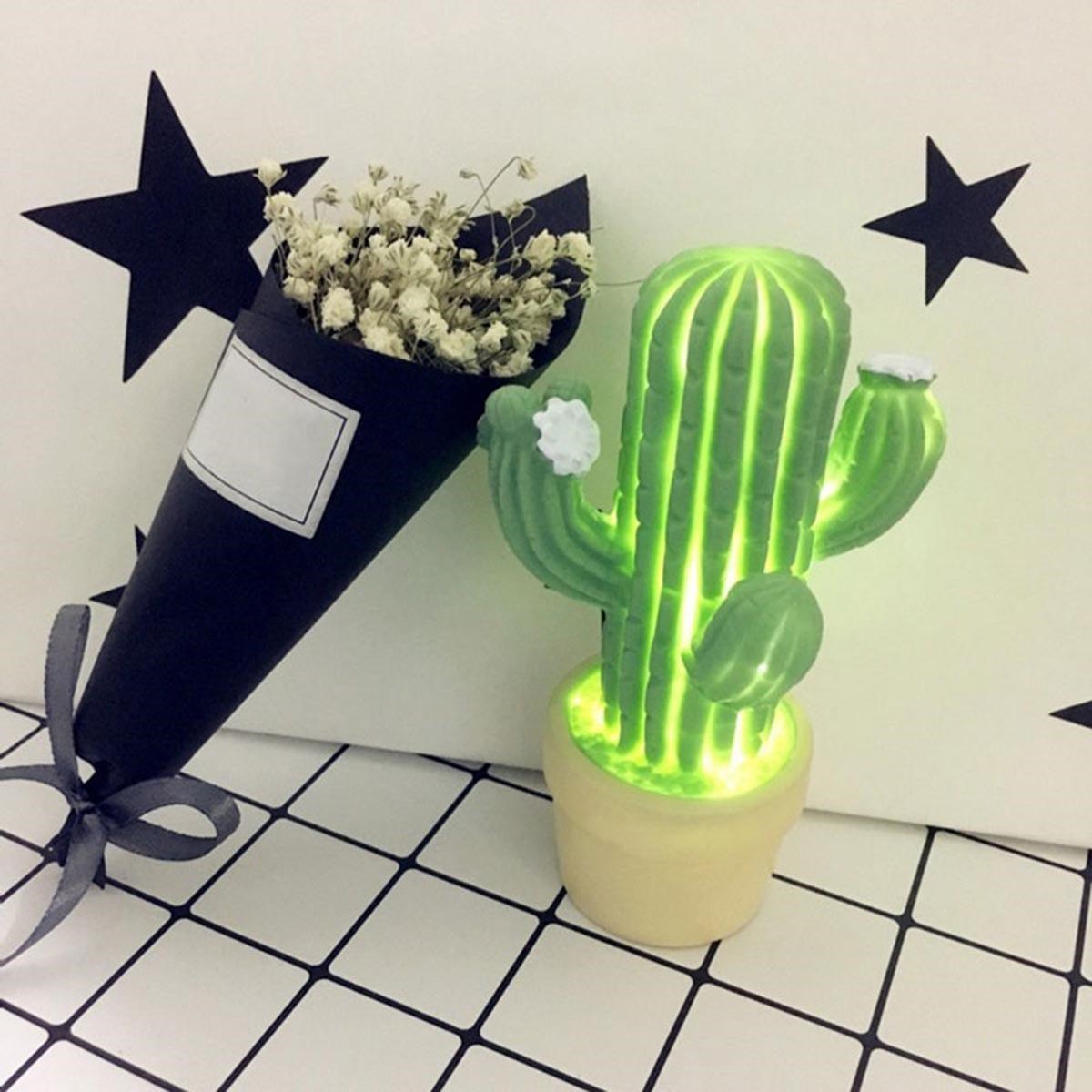 BUFFER® Mini Kaktüs Dekoratifli Pilli Led Masa Gece Lambası Aydınlatma