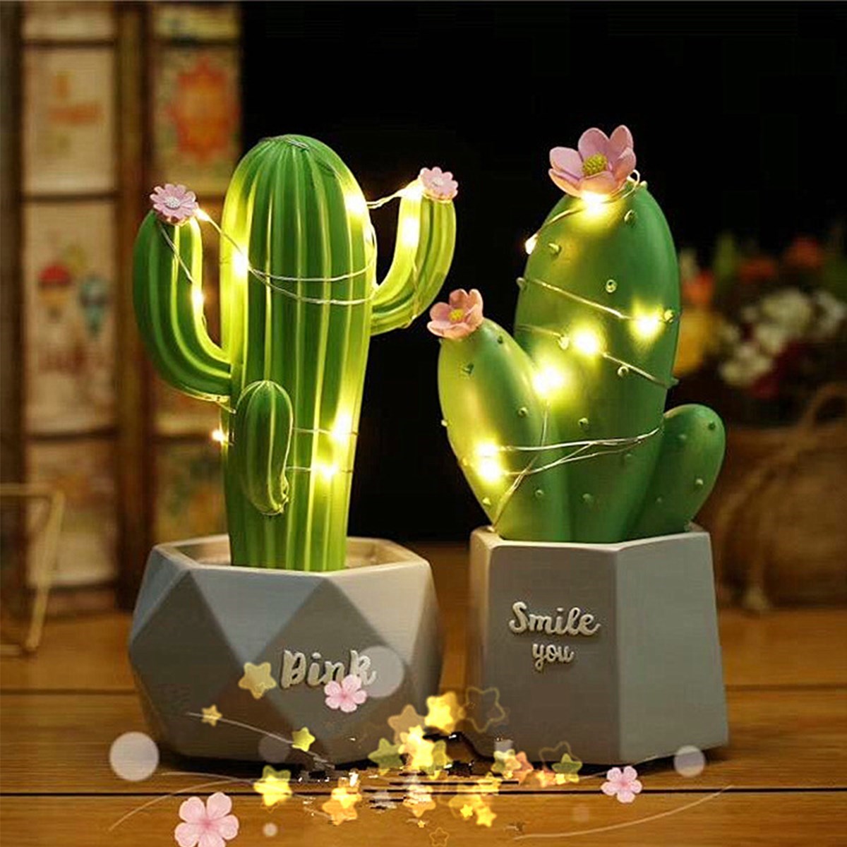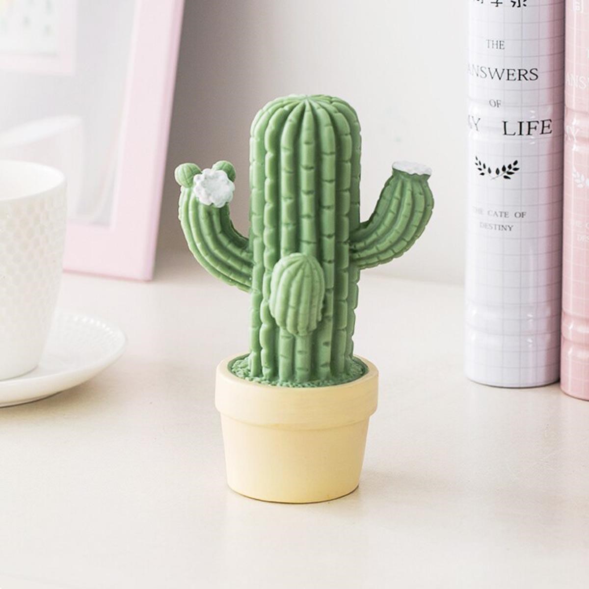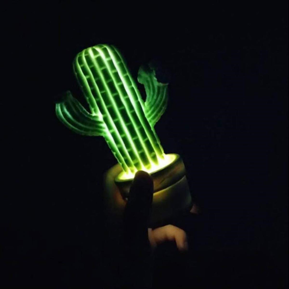 BUFFER® Mini Kaktüs Dekoratifli Pilli Led Masa Gece Lambası Aydınlatma