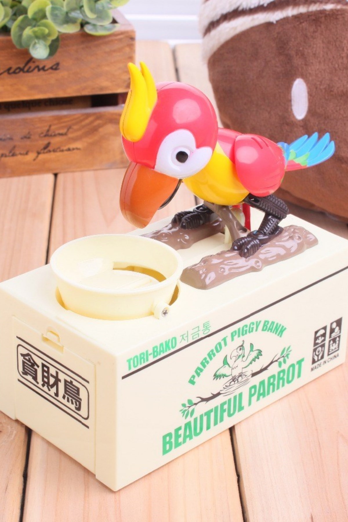 Çocuklarınızı tasarruflu olmaya teşvik etmenin en şirin yolu önüne konan bozuk parayı hapur hupur yemeye başlıyor Bozuk paralarınız Para Yiyen Papağan Kumbarada birikiyor