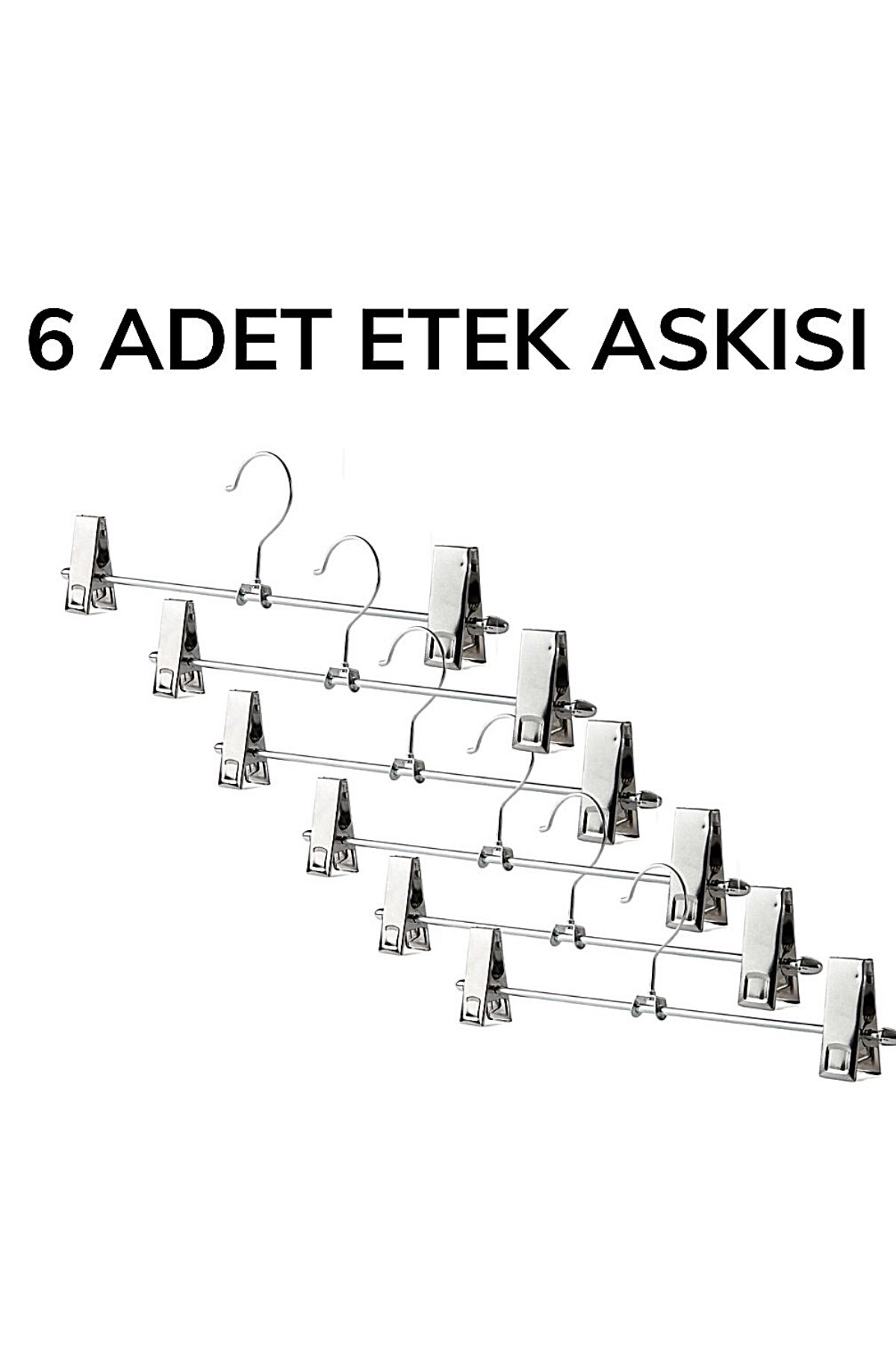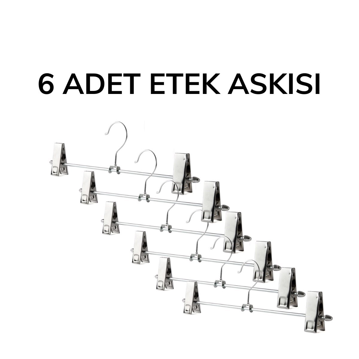 Kıyafetlerinizi pratik şekilde asabileceğiniz, fonksiyonel paslanmaz pantolon ve etek askısı sayesinde evinizde kargaşaya son verin Sağlam işlevsel 6 adet askı, dolaplarınızda yer tasarrufu sağlar askı izi bırakmaz Paslanmaz pratik askılık ile dolaplarınız hiç olmadığı kadar düzenli olacak