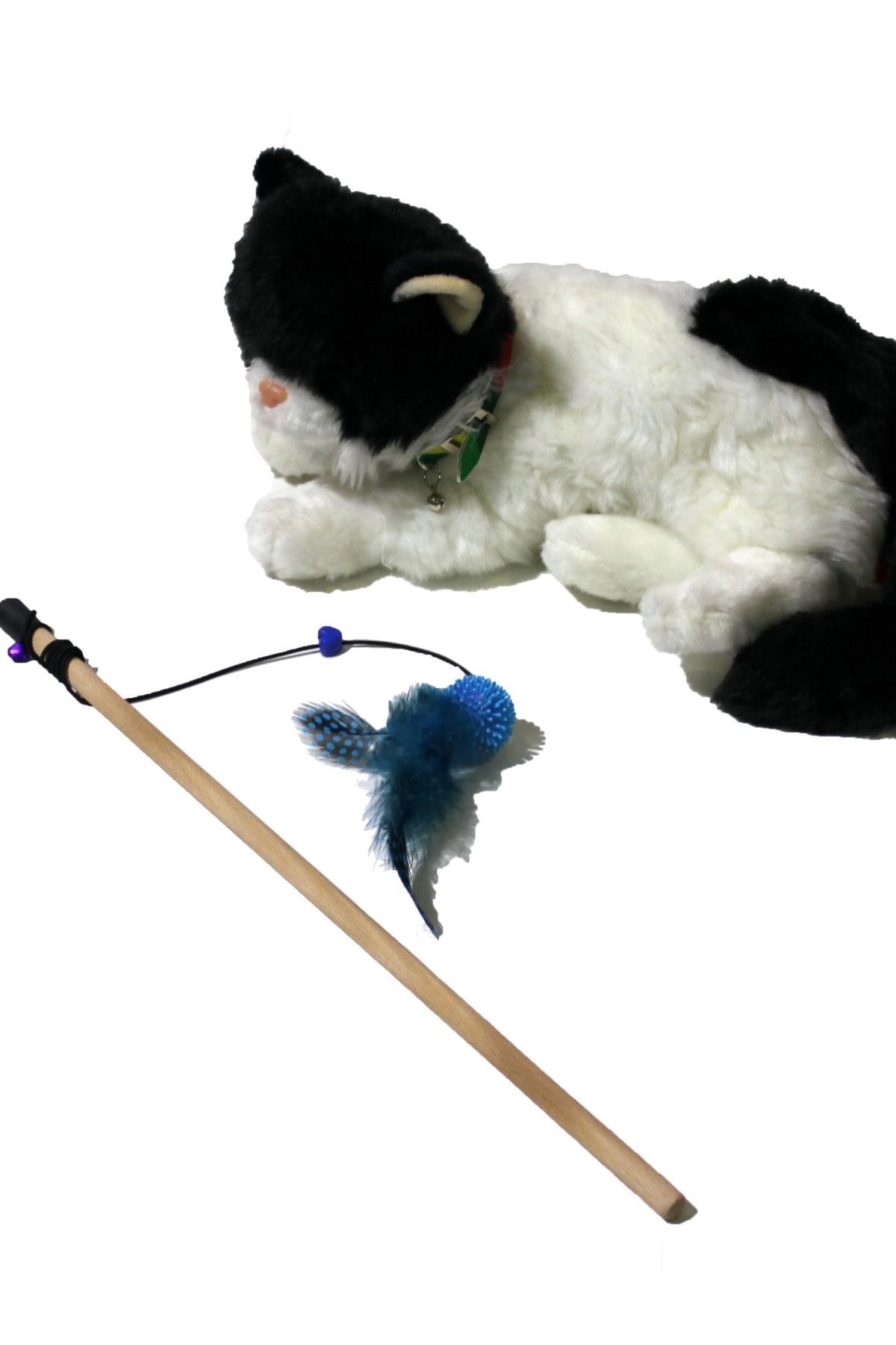 Peluş Oyuncaklı Tahta Saplı Eğlenceli Uzayabılen Kedi Oyun Oltası