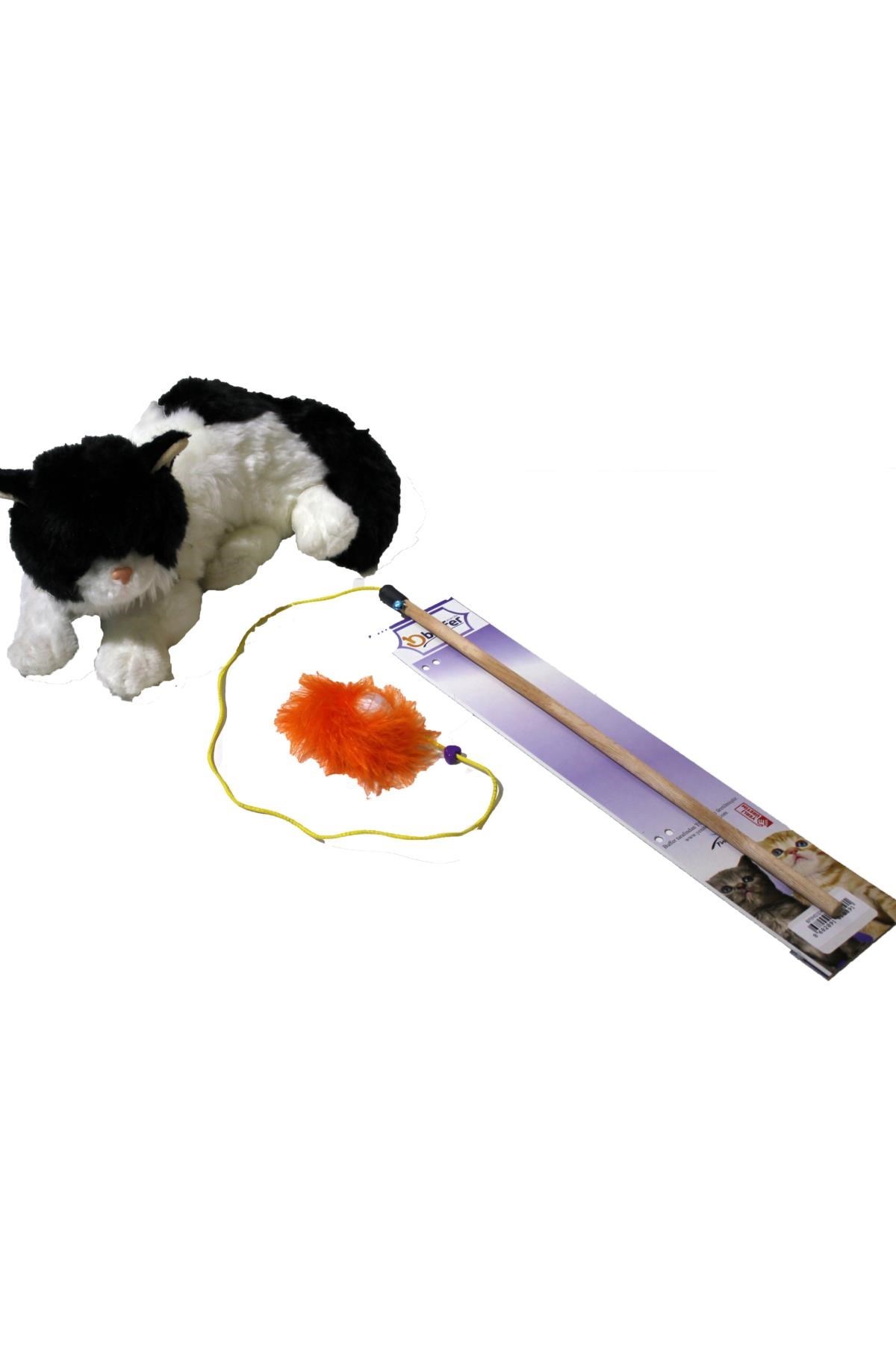 BUFFER® Peluş Oyuncaklı Tahta Saplı Eğlenceli Uzayabılen Kedi Oyun Oltası