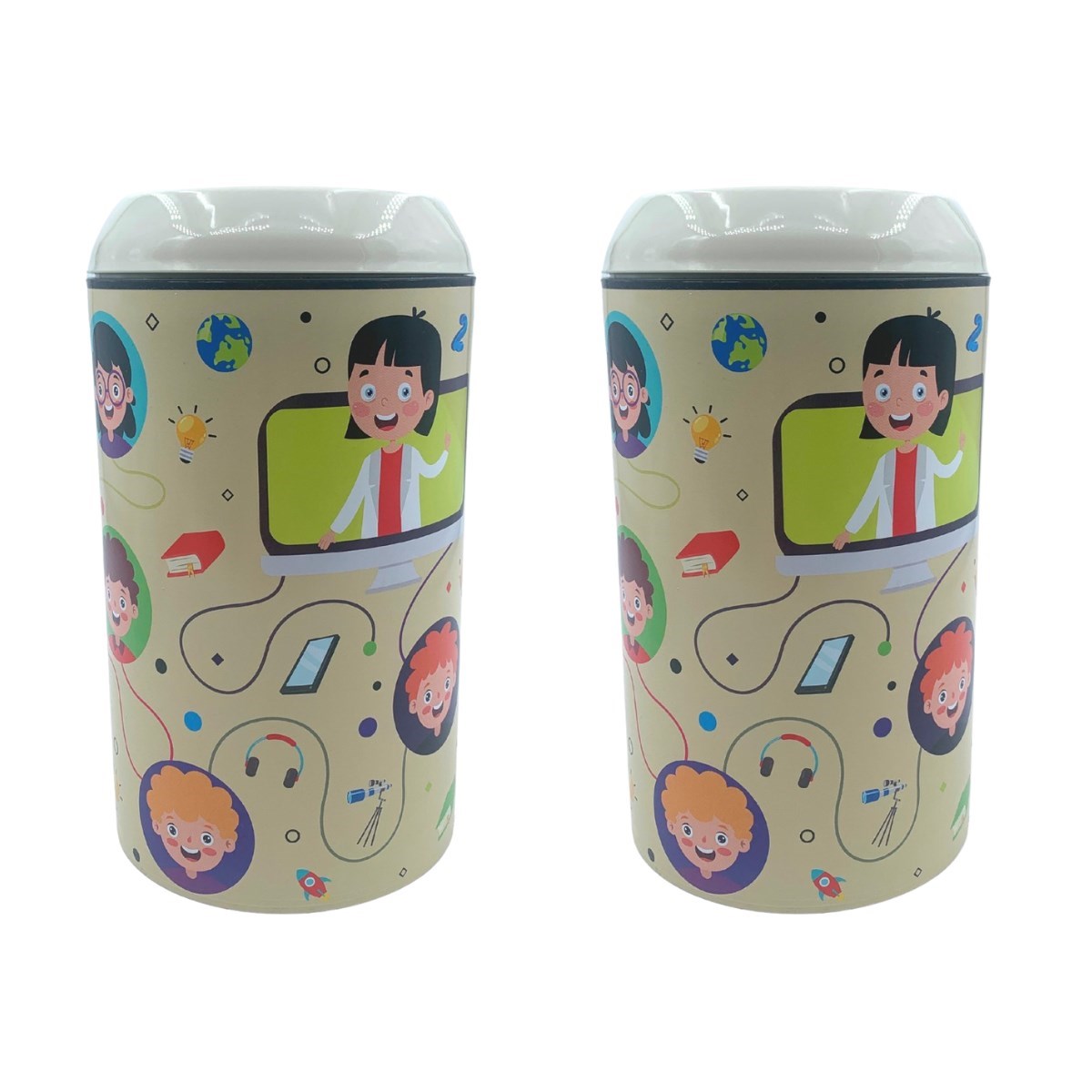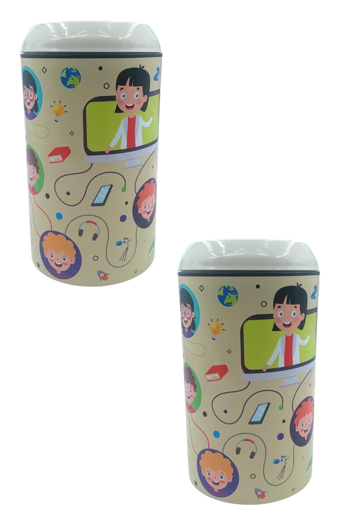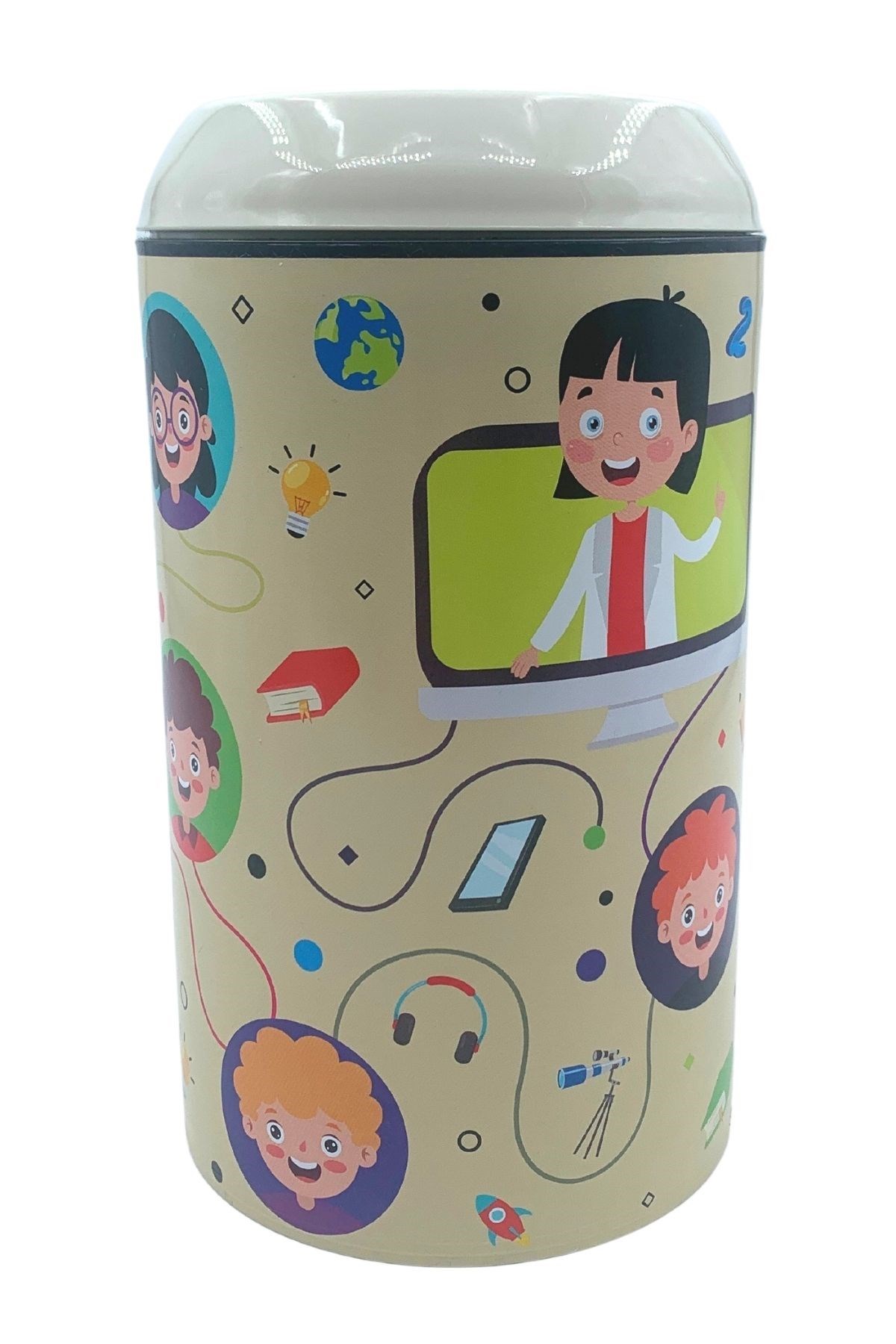 BUFFER® Plastik Krem Gülen Yüzlü Öğrencili Zor Açılan Kız Erkek Çocuk Kumbarası- TP-284