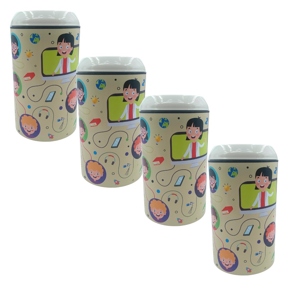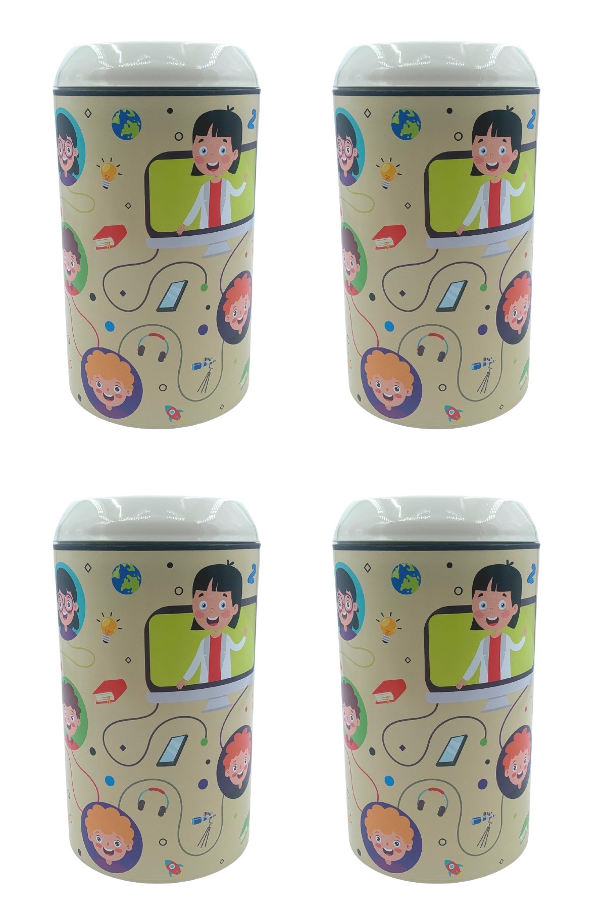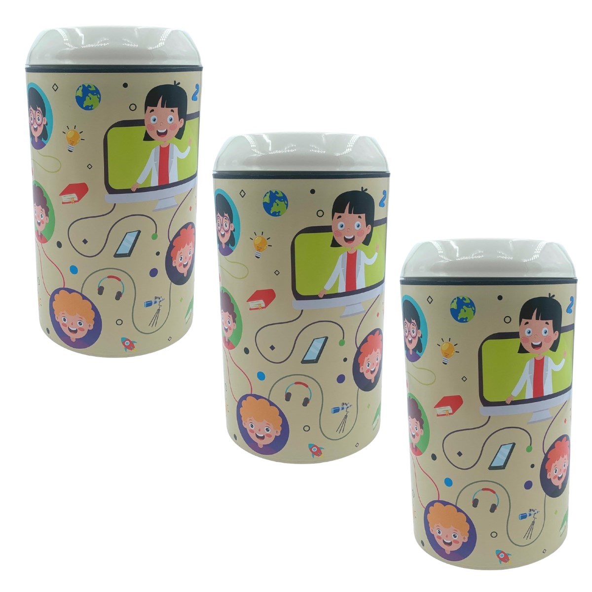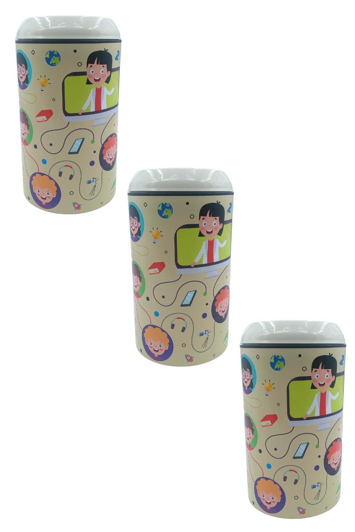 BUFFER® Plastik Krem Gülen Yüzlü Öğrencili Zor Açılan Kız Erkek Çocuk Kumbarası- TP-284