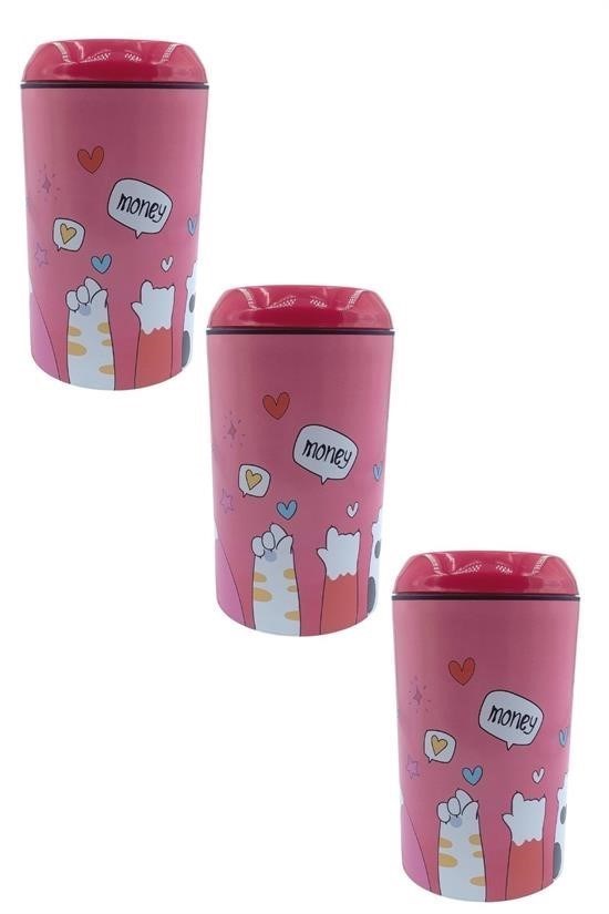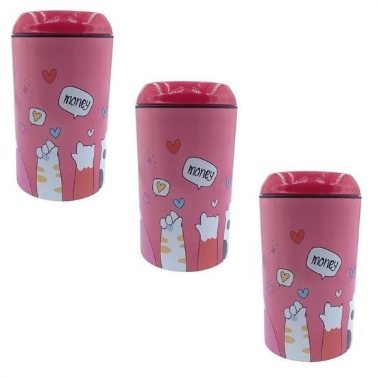 BUFFER® Plastik Pembe Gülen Yüzlü Patili Zor Açılan Erkek Kız Çoçuk Kumbarası- TP-284