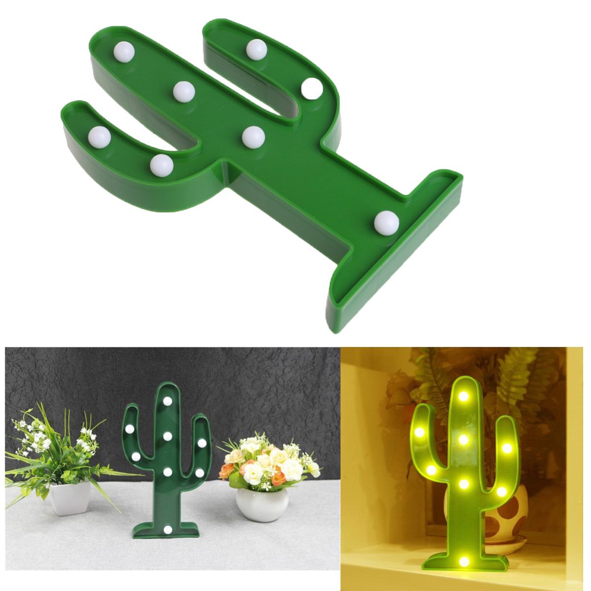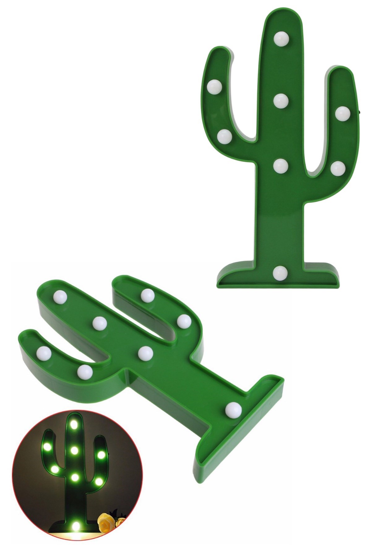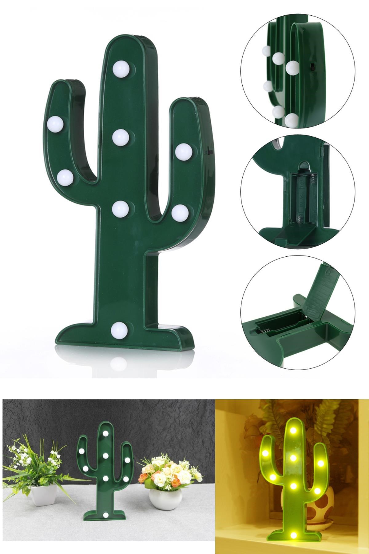 BUFFER® Sevimli Kaktüs Dekoratif Pilli Led Işıklı Masa Gece Lambası