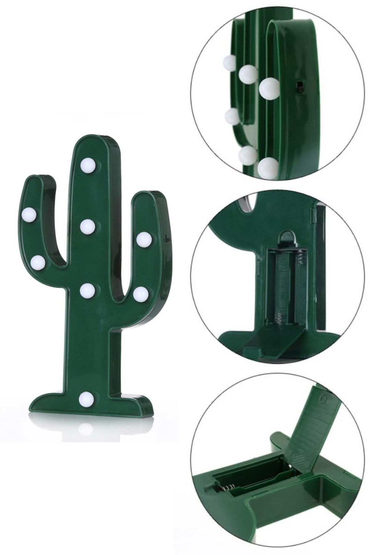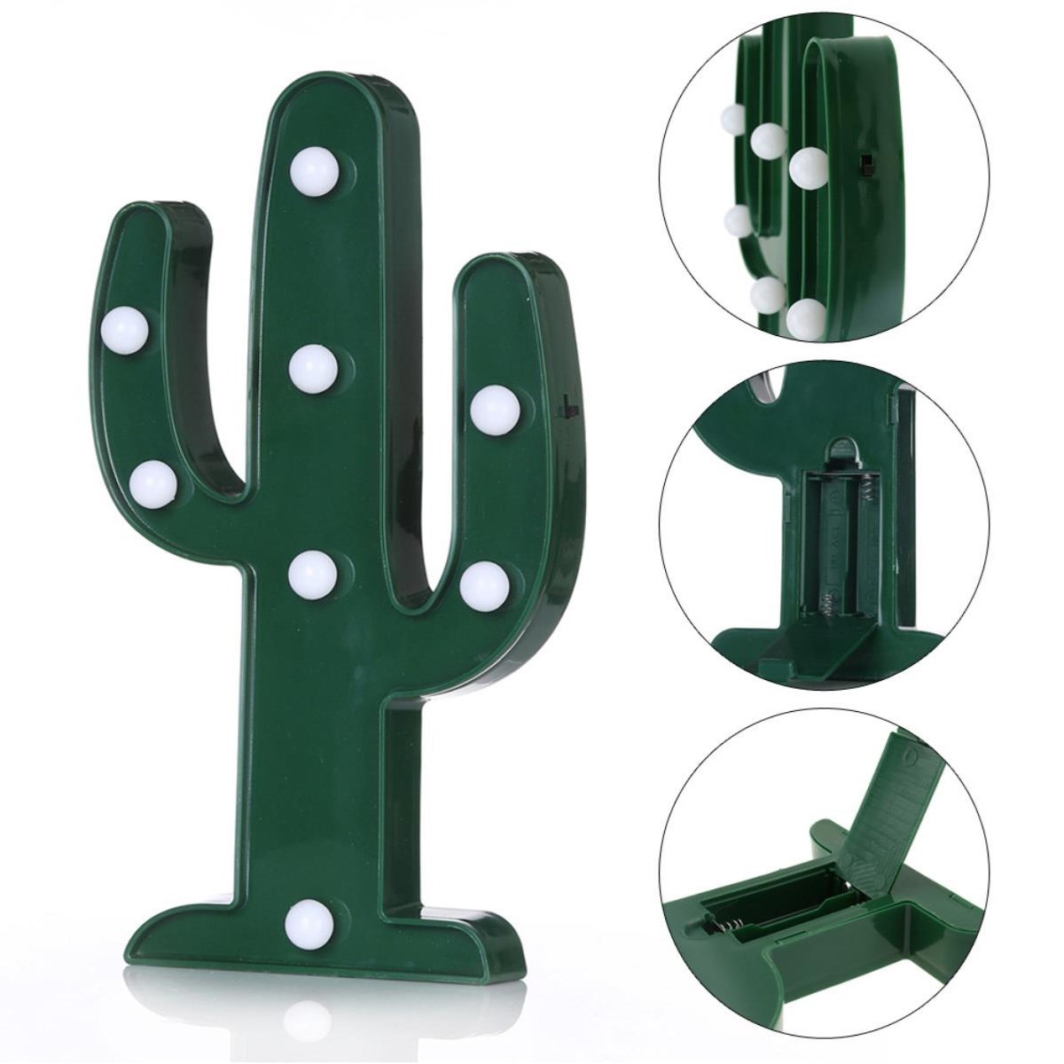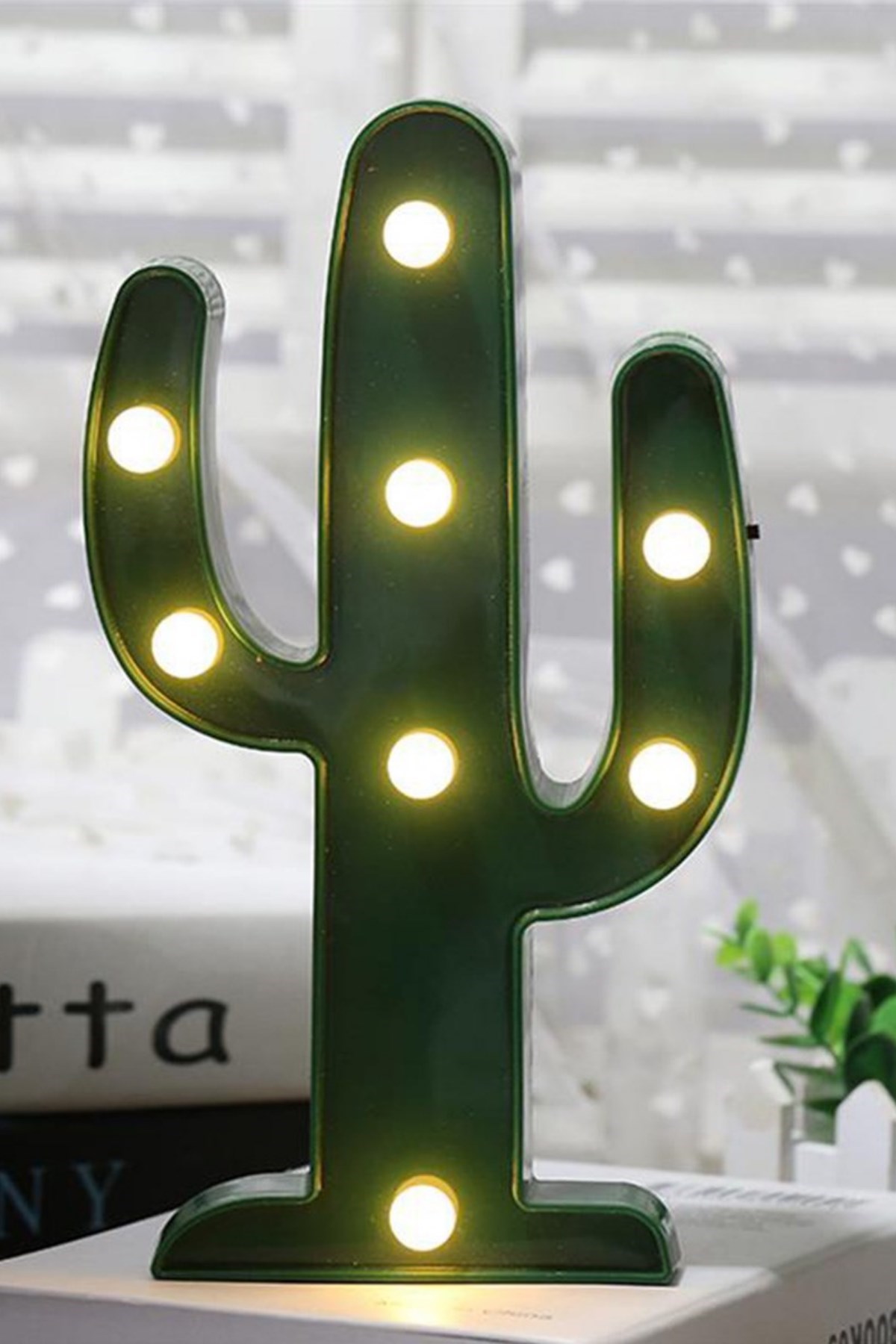 BUFFER® Sevimli Kaktüs Dekoratif Pilli Led Işıklı Masa Gece Lambası