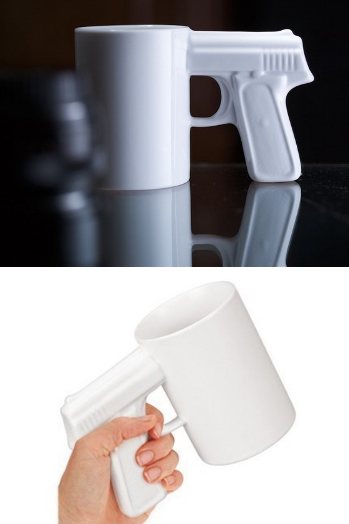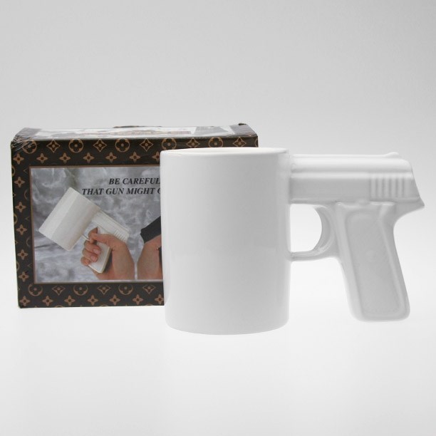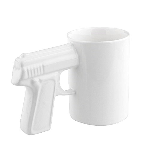 BUFFER® Silah Tabanca Kulplu Beyaz Renk Eğlenceli Kupa Bardak