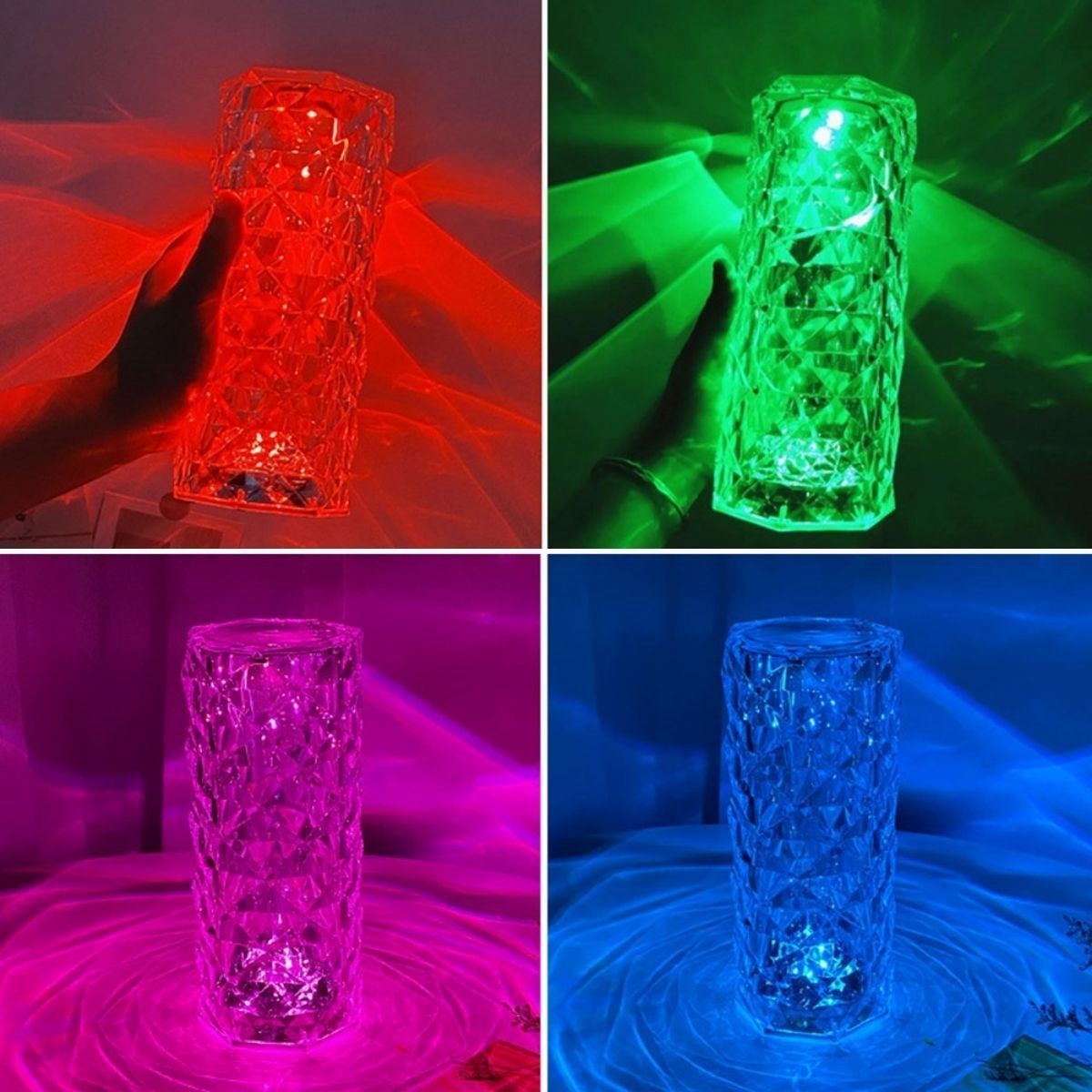 BUFFER® Silindir Model USB Şarjlı Dokunmatik Kumandalı 16 Farklı Işık Modlu Masa Üstü Kristal Akrilik Lamba Led