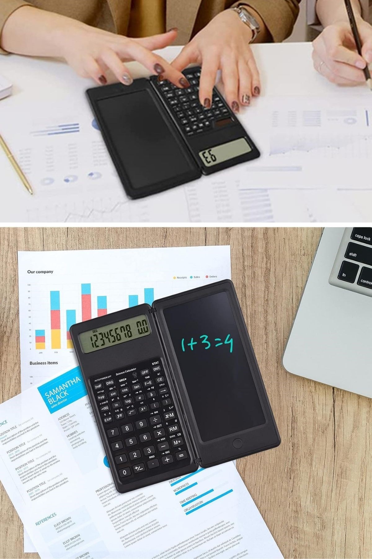 BUFFER® Silinebilir LCD Yazı Tabletli,Kalemli Katlanabilir Bilimsel Hesap Makinesi